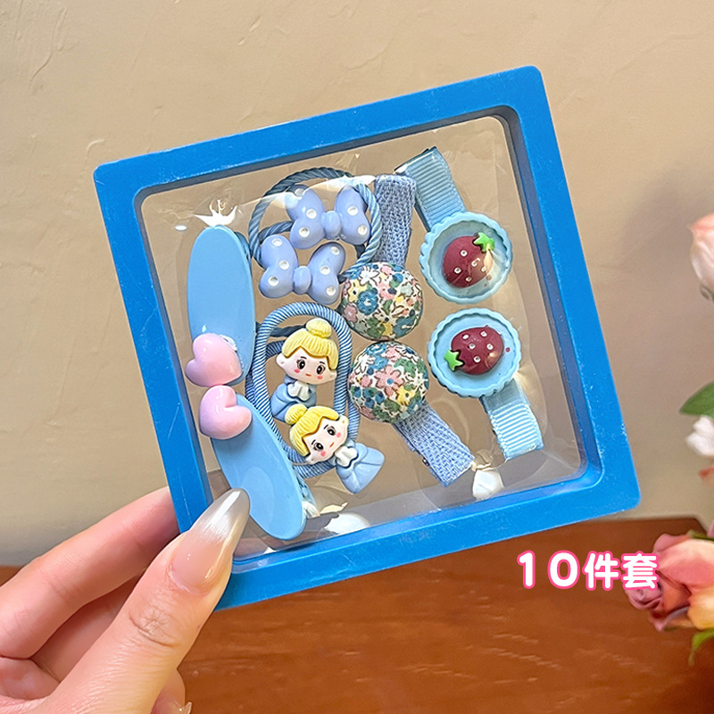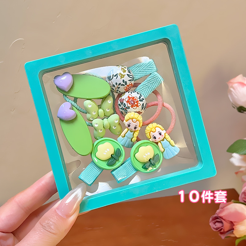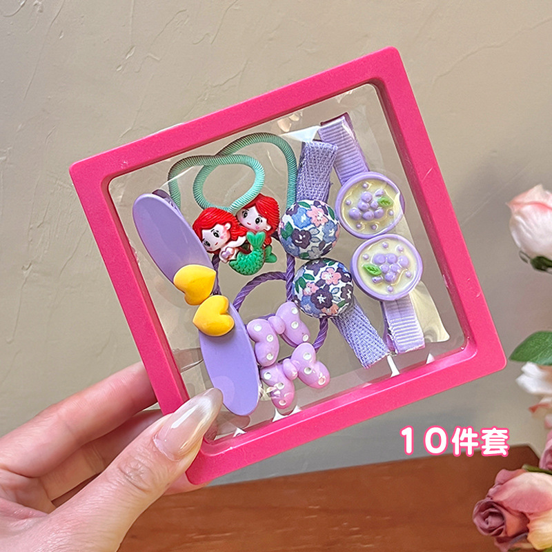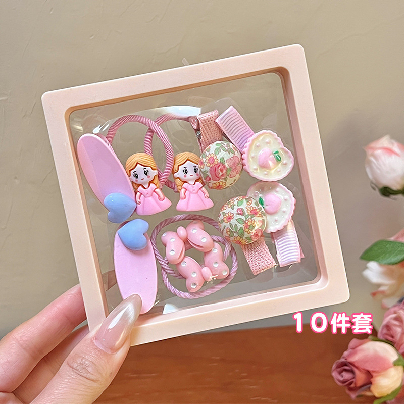 어린이 귀여운 공주 헤어 로프 여성용 고무 밴드 버튼 꽃 헤어 카드 사랑 헤어 액세서리 세트 6 개의 선물 상자