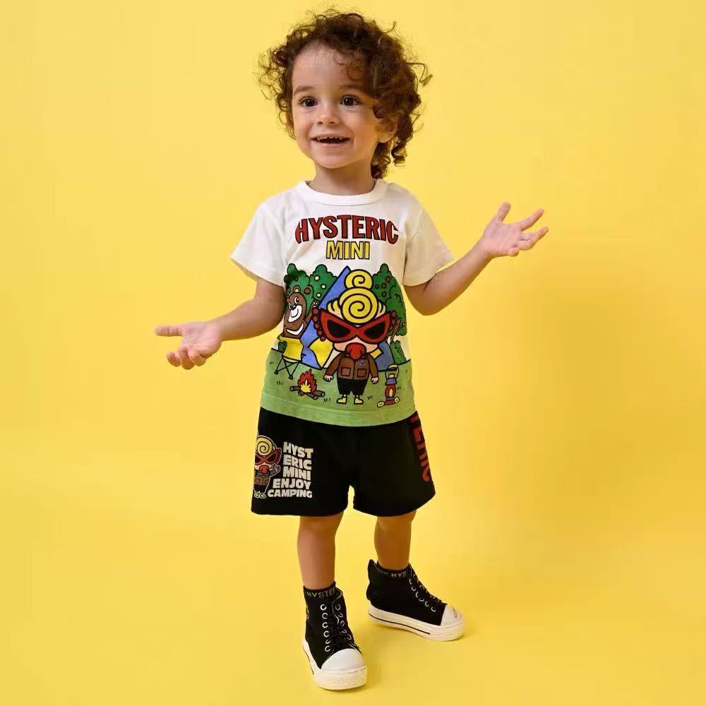 [바지 재고] 가오 딩 블랙 슈퍼 2025 여름 차오 브랜드 젖꼭지 캠핑 짧은 소매 티셔츠 5 점 바지 세트