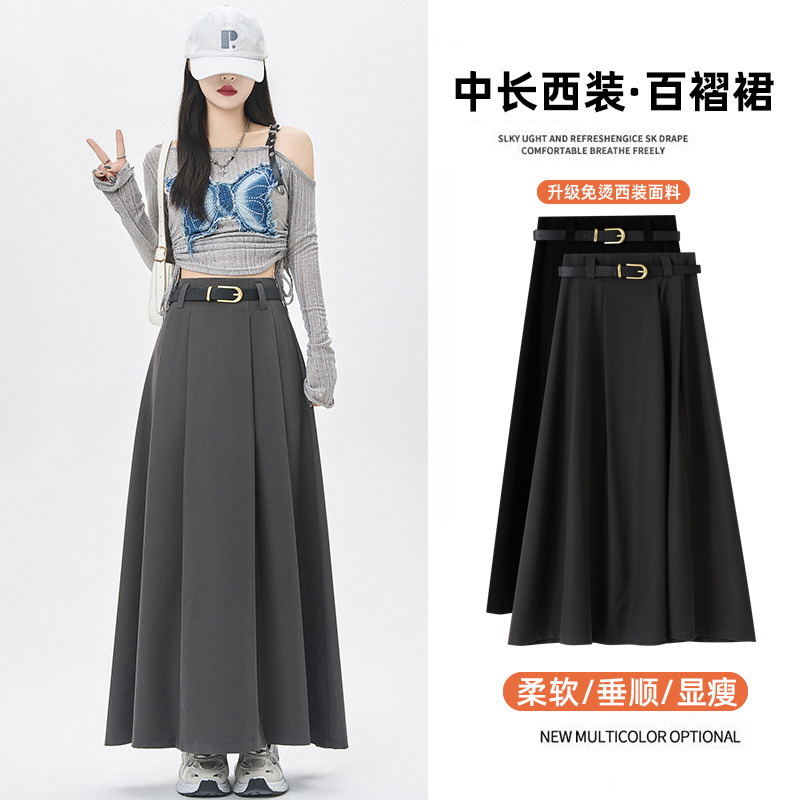 세트 스커트 여성의 봄과 가을 새 플러스 사이즈 통통녀 높은 허리 엉덩이 커버 A 라인 우산 스커트 슬리밍 중간 길이 주름 치마스토어 가기