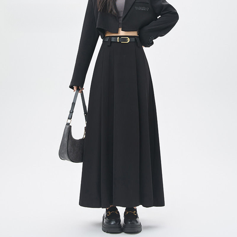 세트 스커트 여성의 봄과 가을 새 플러스 사이즈 통통녀 높은 허리 엉덩이 커버 A 라인 우산 스커트 슬리밍 중간 길이 주름 치마