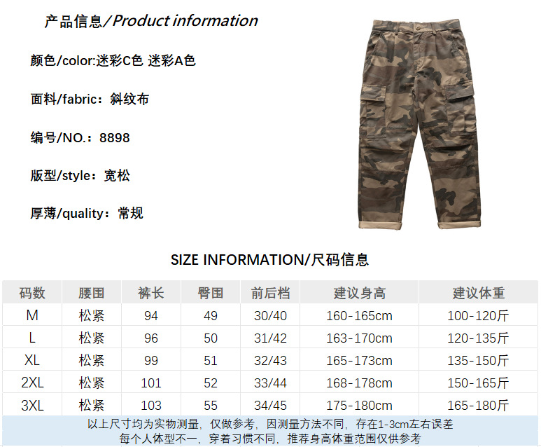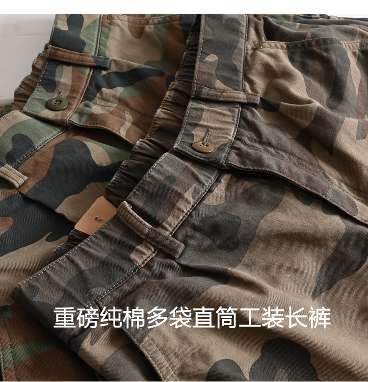 크로스보더 헤비급 아메리칸 캐주얼 카모플라주 스트레이트 레그 워크웨어 캐주얼 바지 남성 아웃도어 밀리터리 스타일 루즈한 대형 일본 트렌드스토어 가기