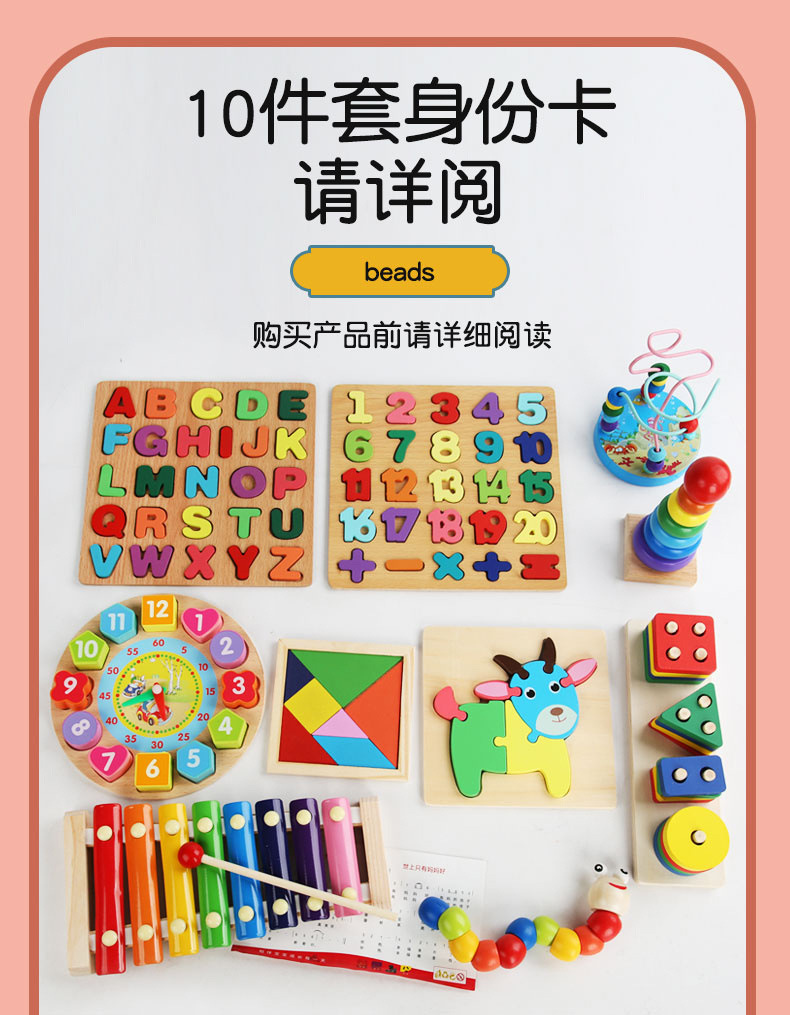 어린이 장난감 패키지, 아기 조기 교육 나무 장난감 퍼즐, 매칭 보드, 페그보드, 구슬, 탱그라드 세트스토어 가기