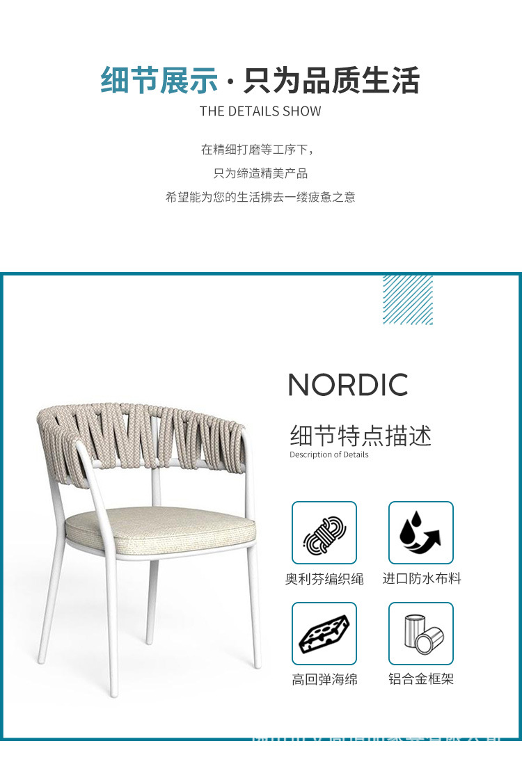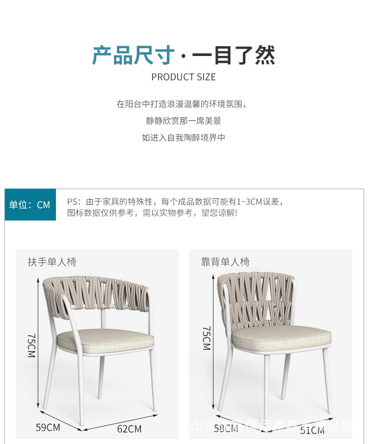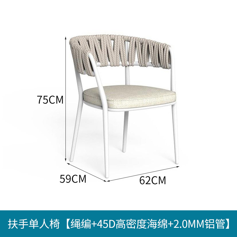 • 오프화이트 - 팔걸이 싱글체어 [로프 + 45D 고밀도 스펀지 + 2.0MM 알루미늄 튜브]