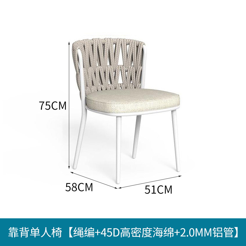 • 오프화이트 - 등받이 싱글체어 [로프 + 45D 고밀도 스펀지 + 2.0MM 알루미늄 튜브]