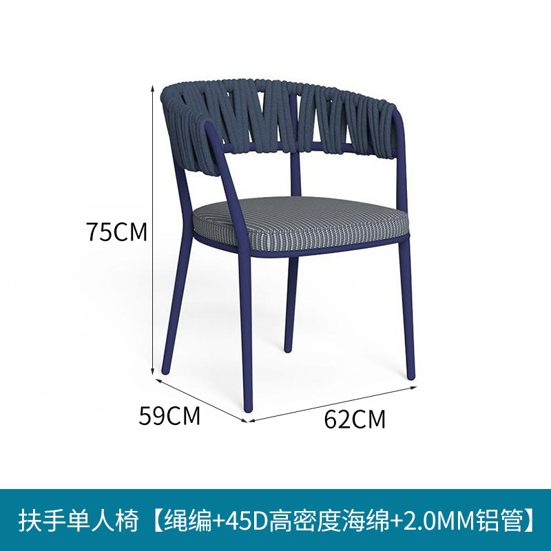 • 다크블루 - 팔걸이 싱글체어 [로프 + 45D 고밀도 스펀지 + 2.0MM 알루미늄 튜브]