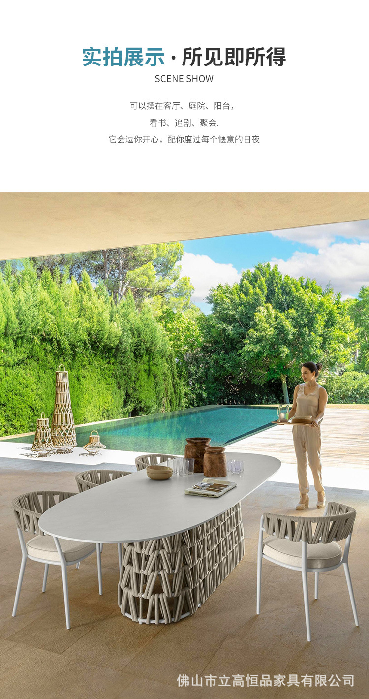 • 140CM 타원형 롱 테이블 [슬레이트 조리대 + 로프 + 2.0MM 알루미늄 튜브]