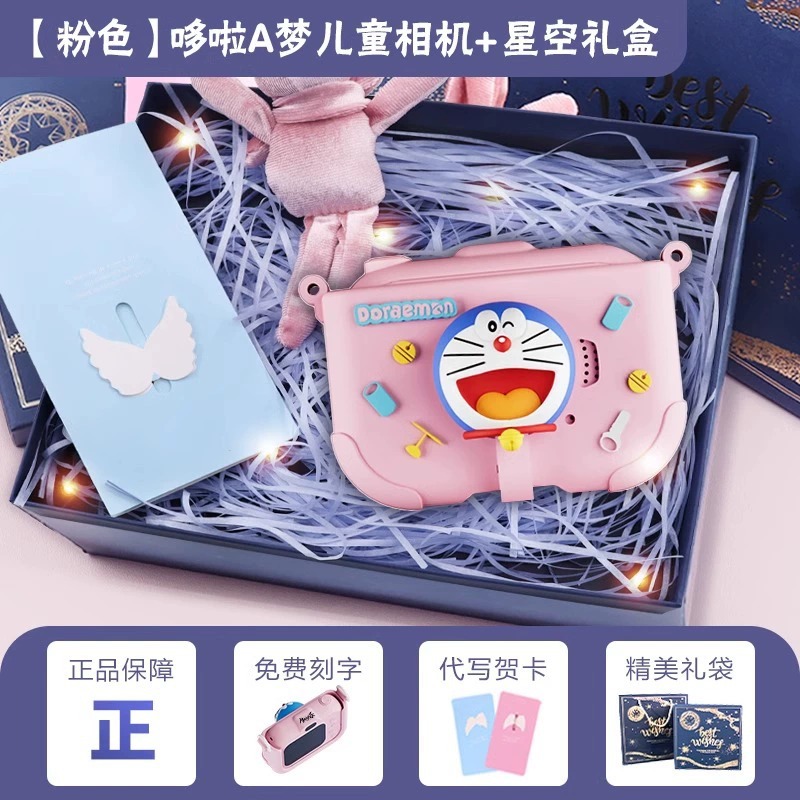 • 도라에몽-어린이 카메라 핑크 [별하늘 선물 상자 + 고급 선물 가방 + 무료 각인 + 대필 인사말 카드]
