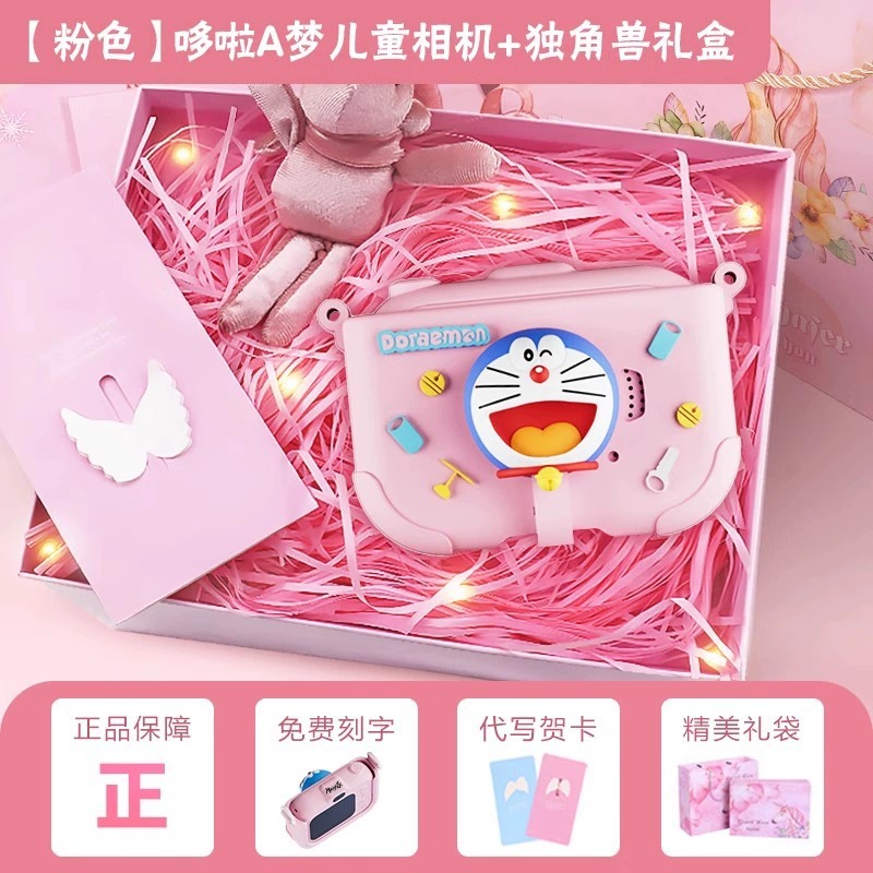 • 도라에몽-어린이 카메라 핑크 [유니콘 선물 상자 + 정교한 선물 가방 + 무료 각인 + 대필 인사말 카드]