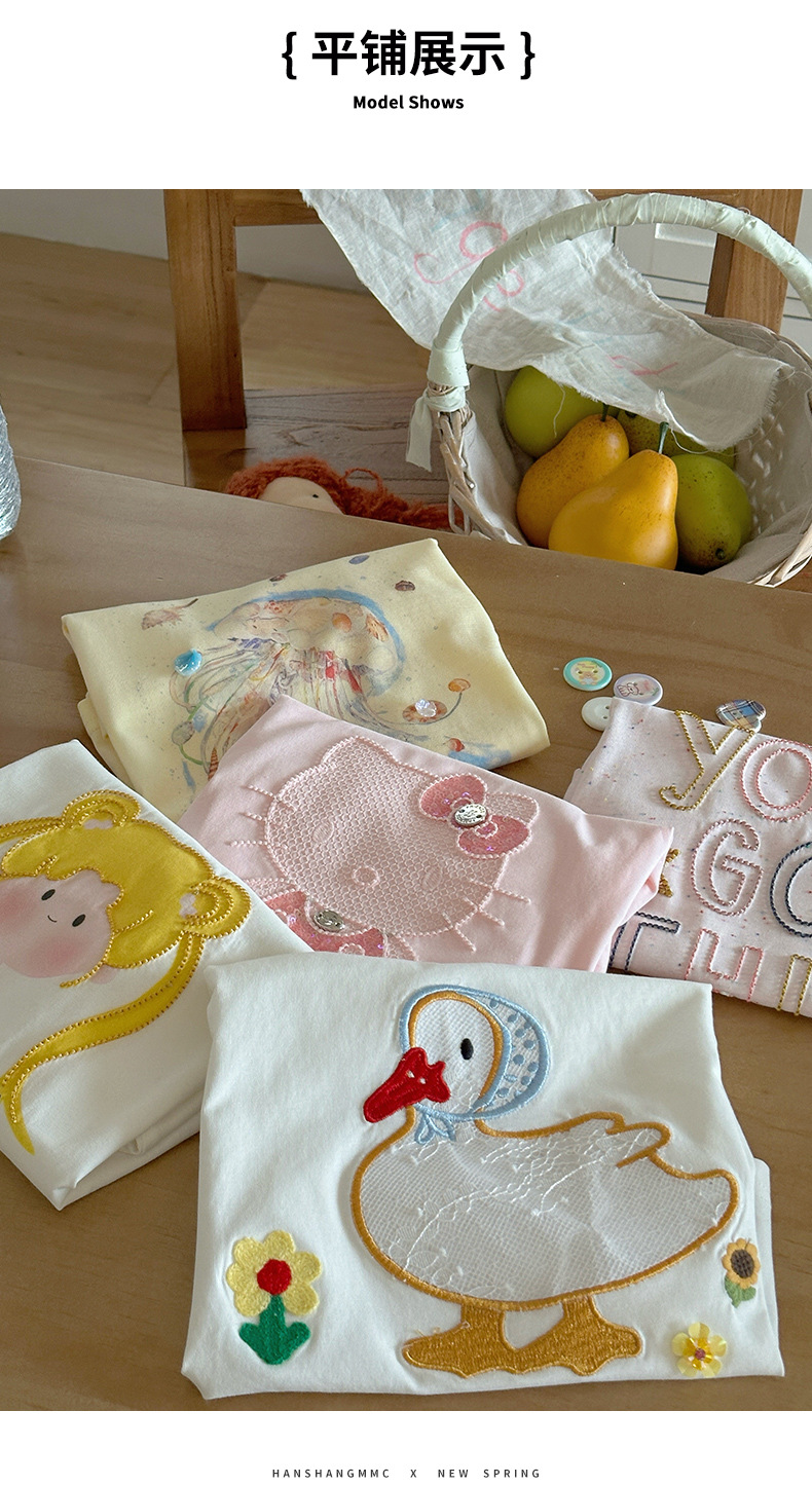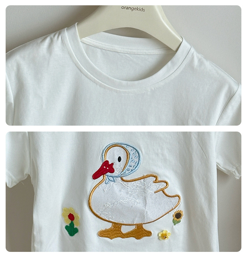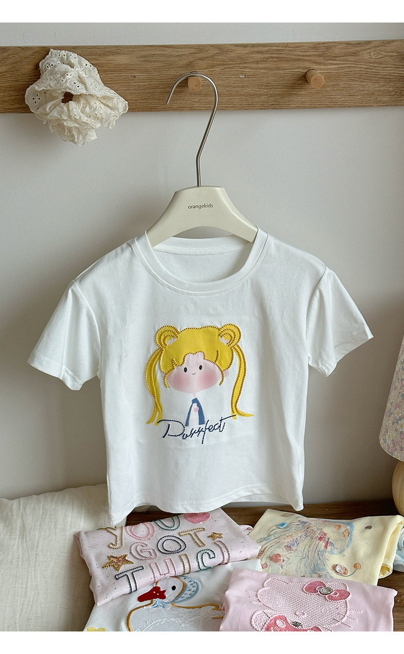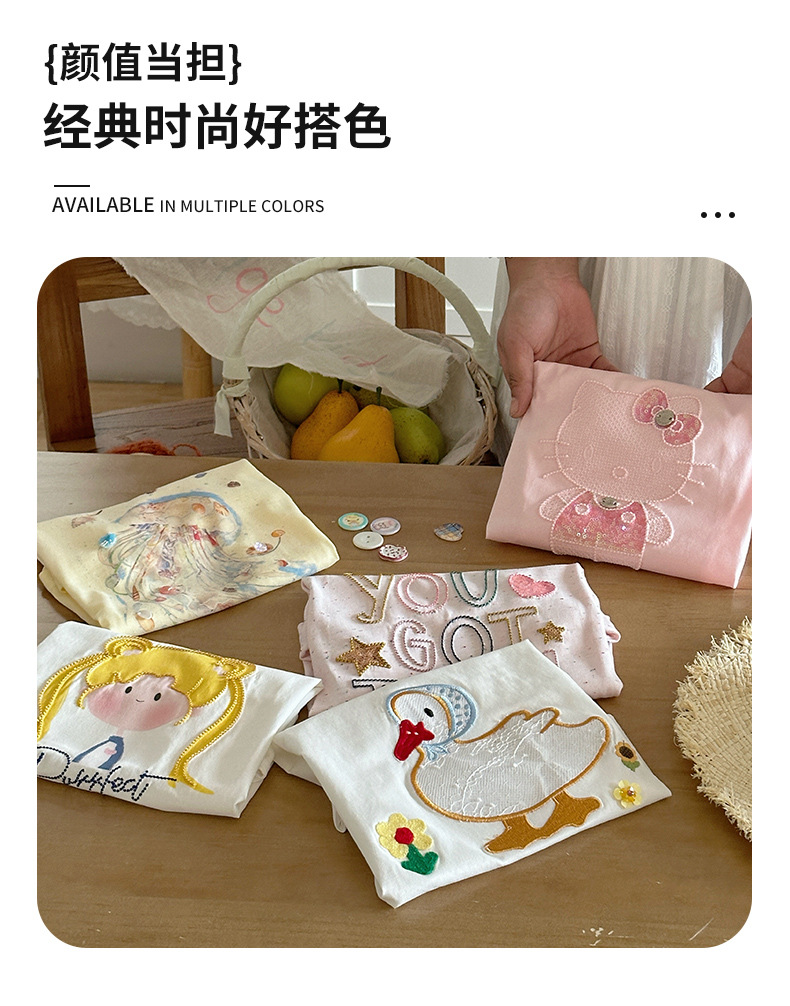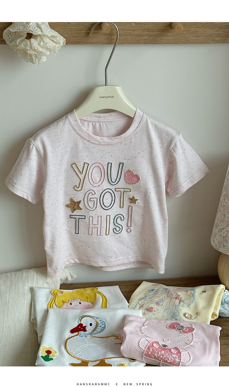 [스타 아이스 코튼 크래프트 스팽글 3 차원 아치 브리지 자수] 소녀 여름 새로운 귀여운 만화 반팔 어린이 티셔츠스토어 가기