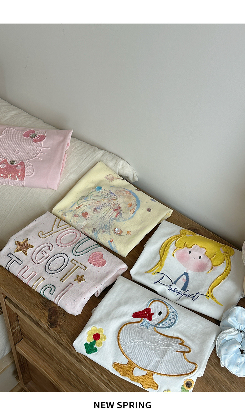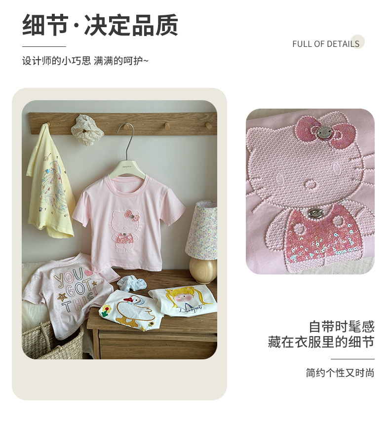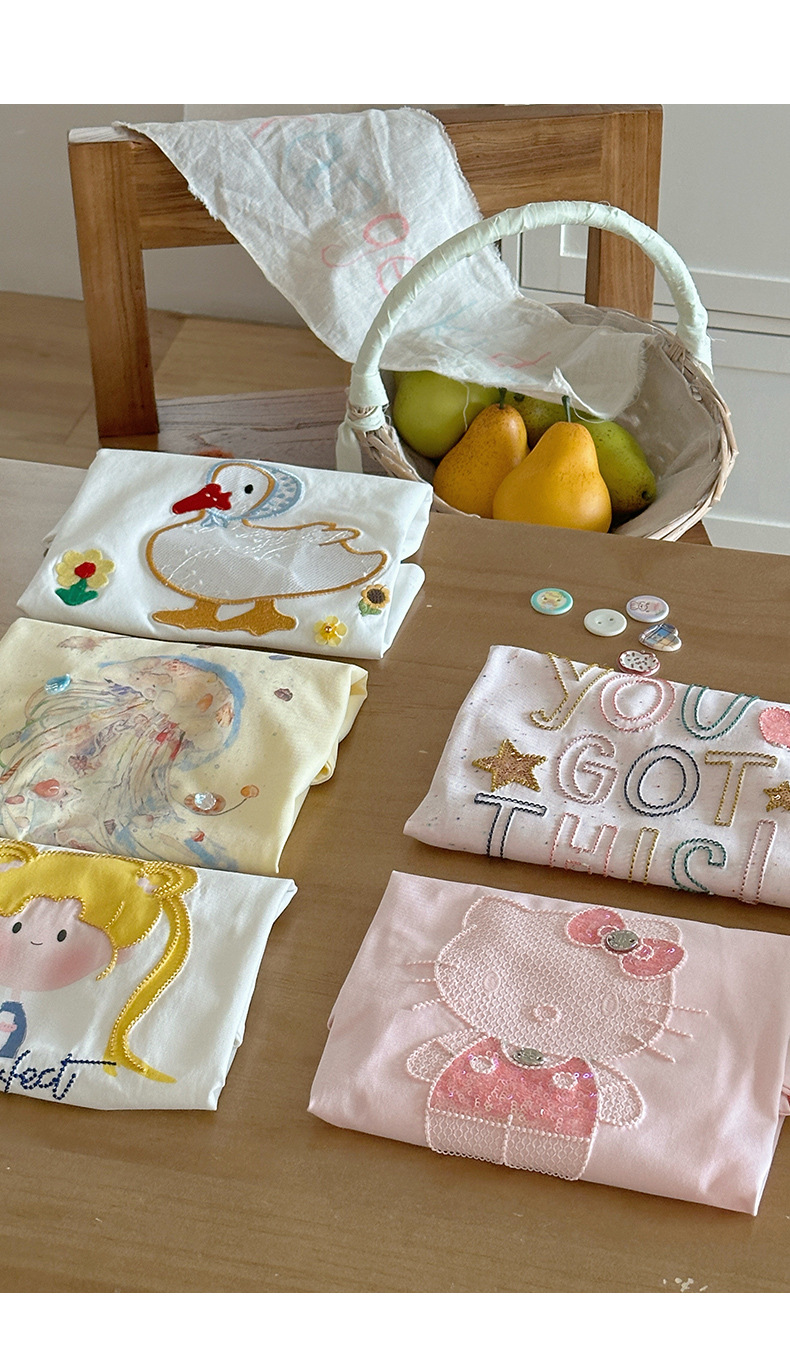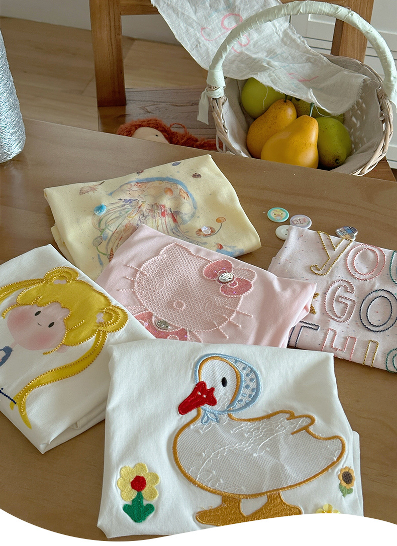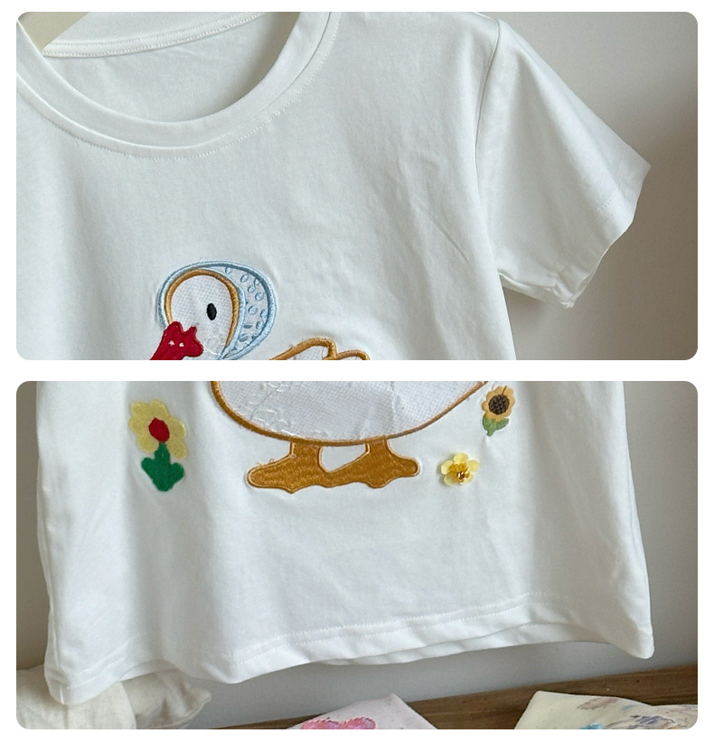 [스타 아이스 코튼 크래프트 스팽글 3 차원 아치 브리지 자수] 소녀 여름 새로운 귀여운 만화 반팔 어린이 티셔츠스토어 가기