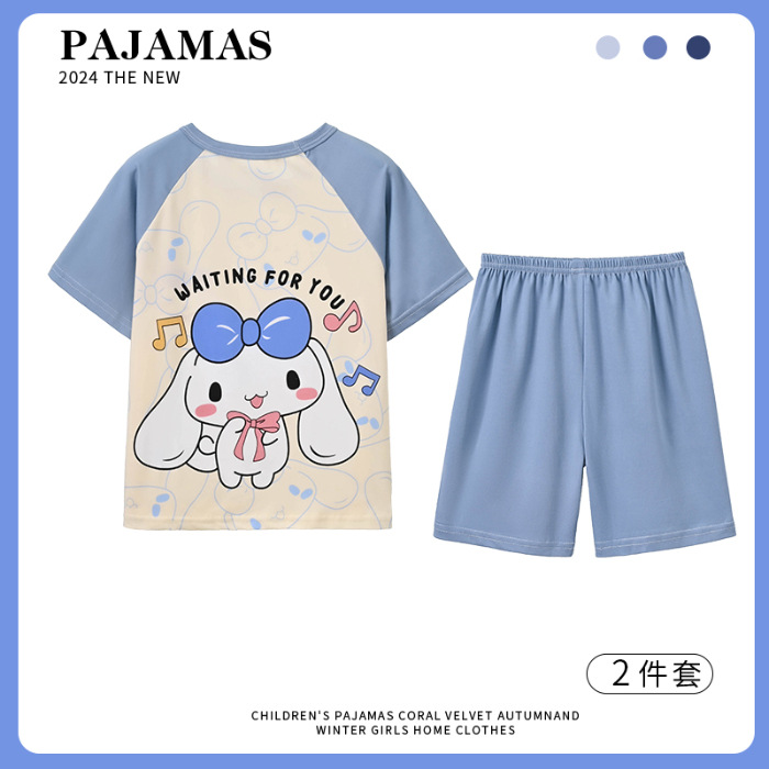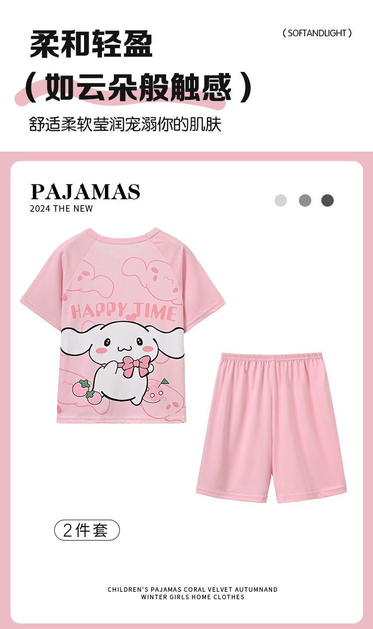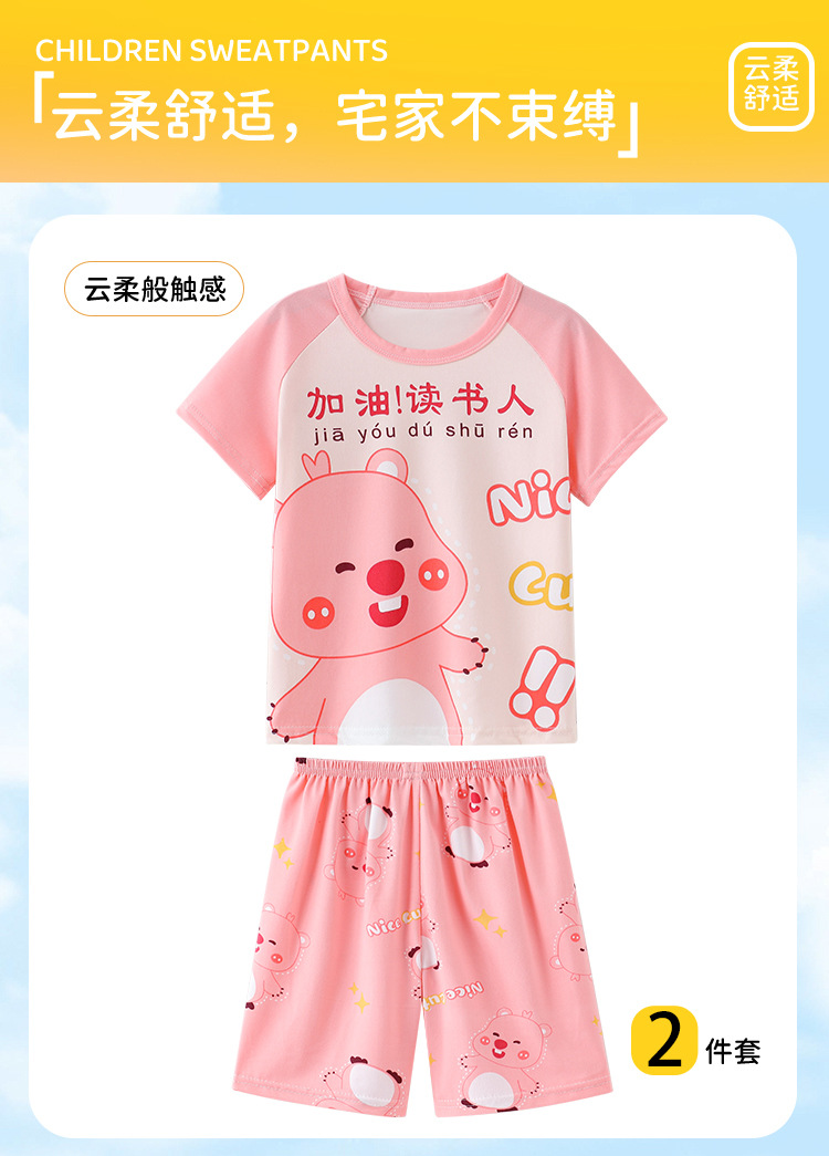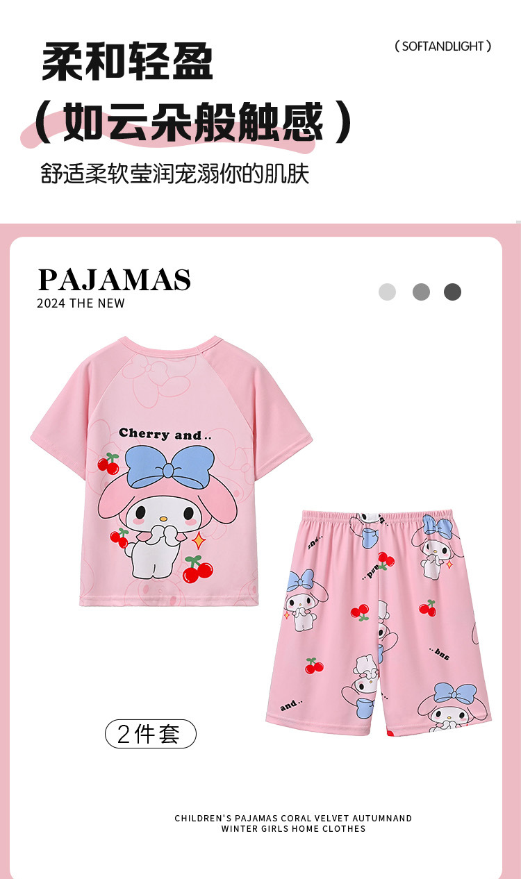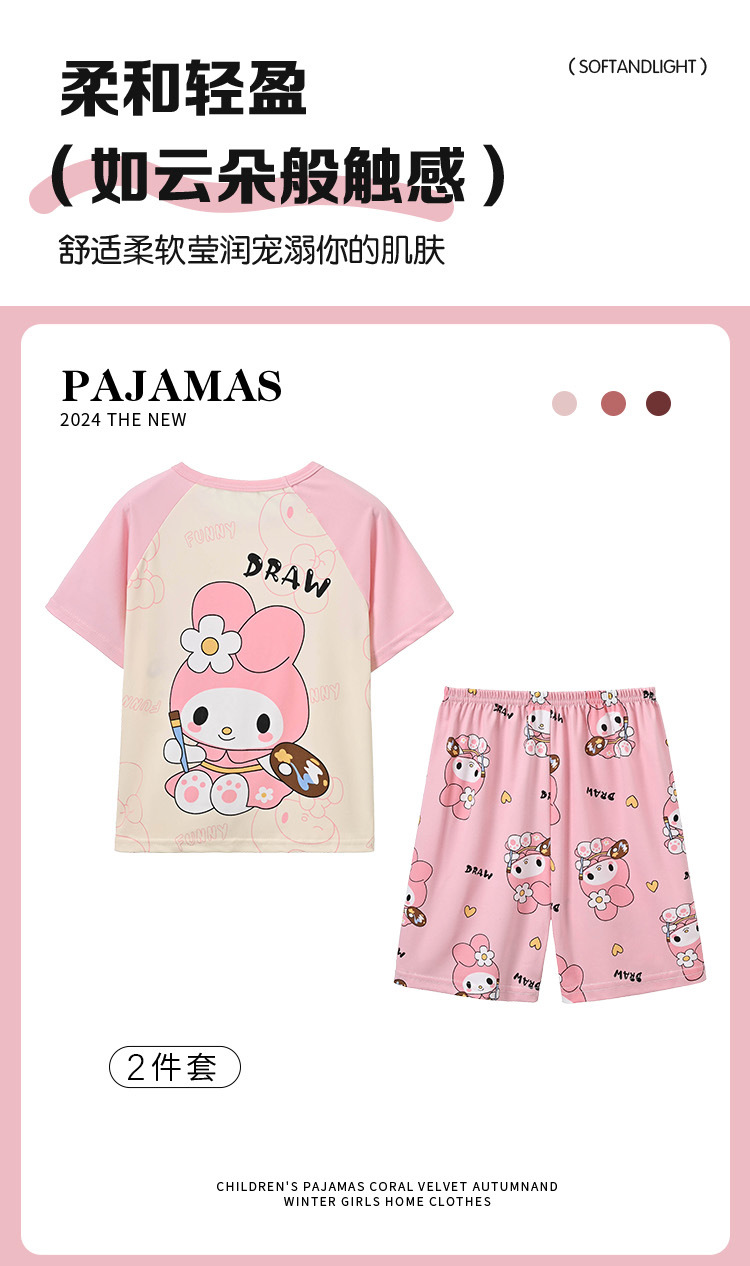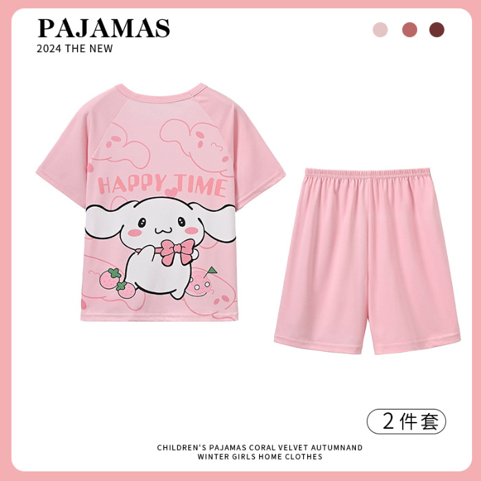 여름 어린이 반팔 프린트 잠옷 잠옷 밀크 실크 모조 면화 세트 새로운 부모-자식 소녀 동남 아시아 재고 있음