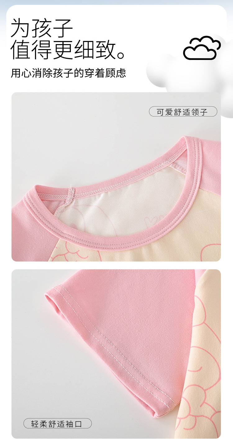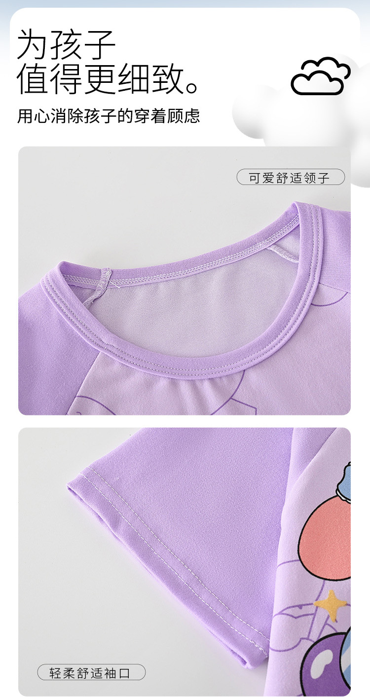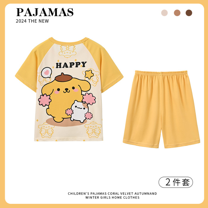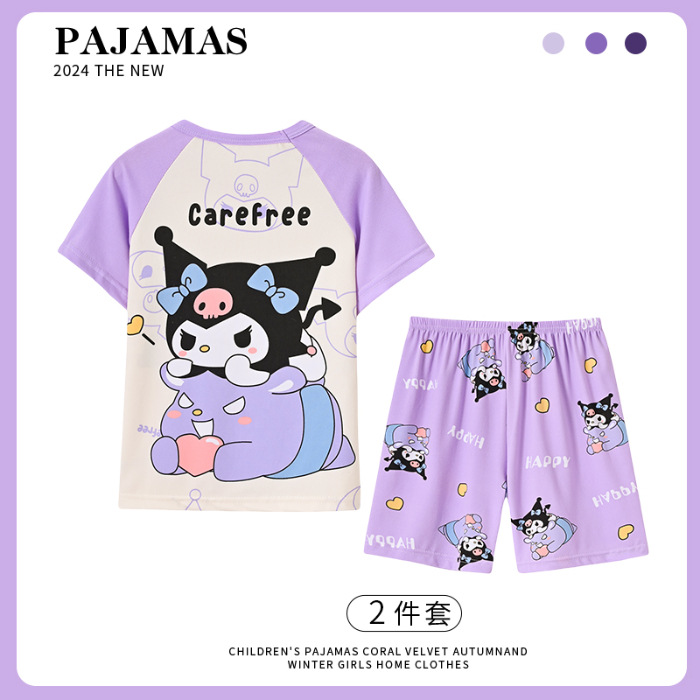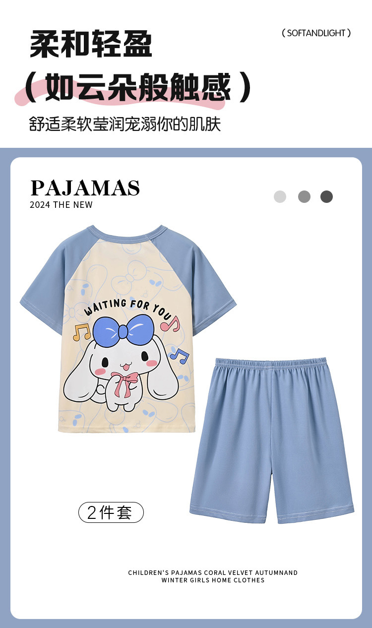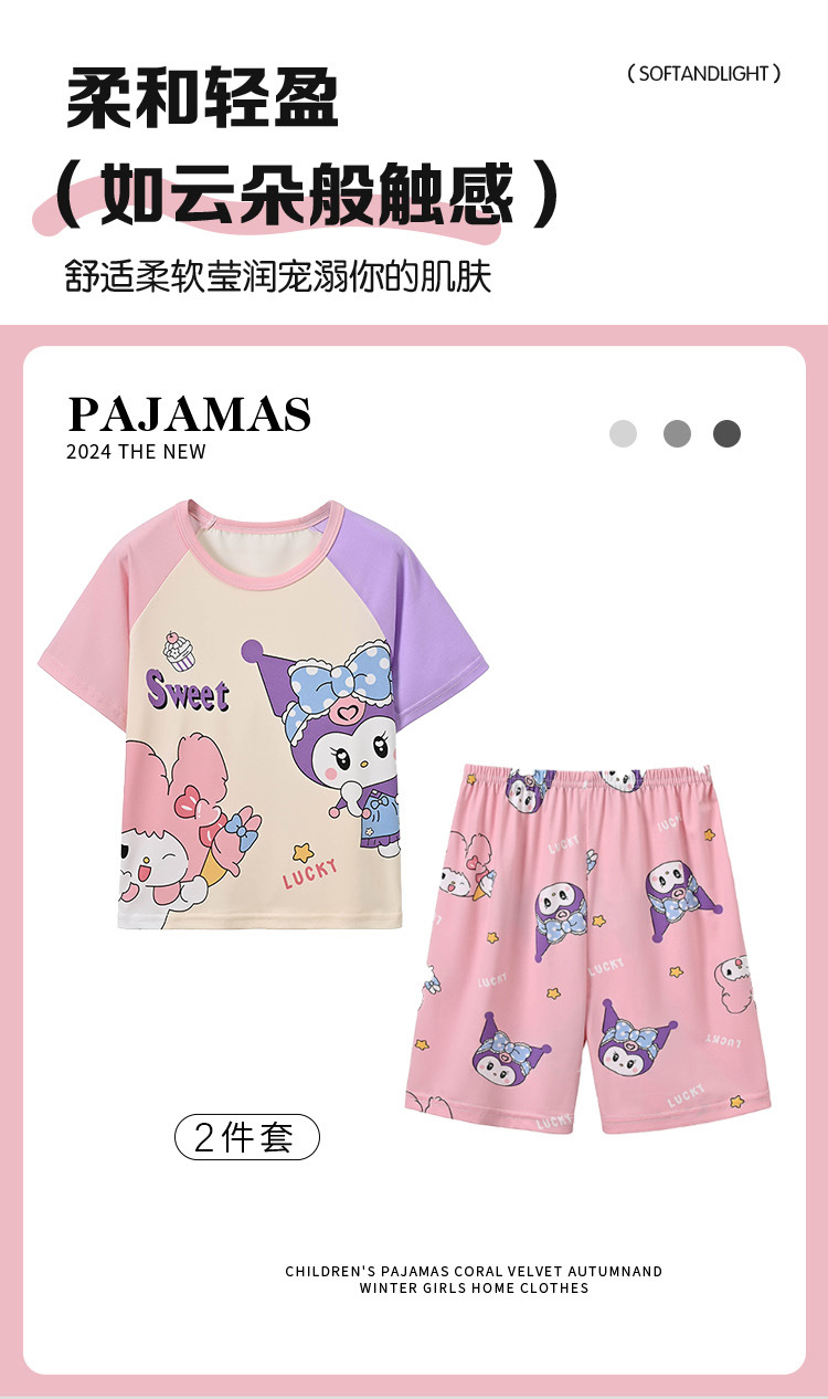 여름 어린이 반팔 프린트 잠옷 잠옷 밀크 실크 모조 면화 세트 새로운 부모-자식 소녀 동남 아시아 재고 있음