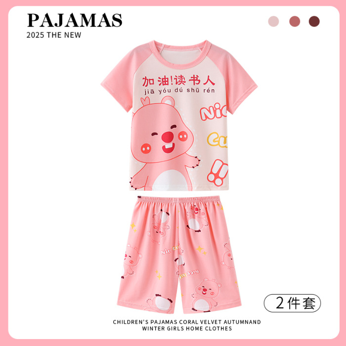 여름 어린이 반팔 프린트 잠옷 잠옷 밀크 실크 모조 면화 세트 새로운 부모-자식 소녀 동남 아시아 재고 있음스토어 가기