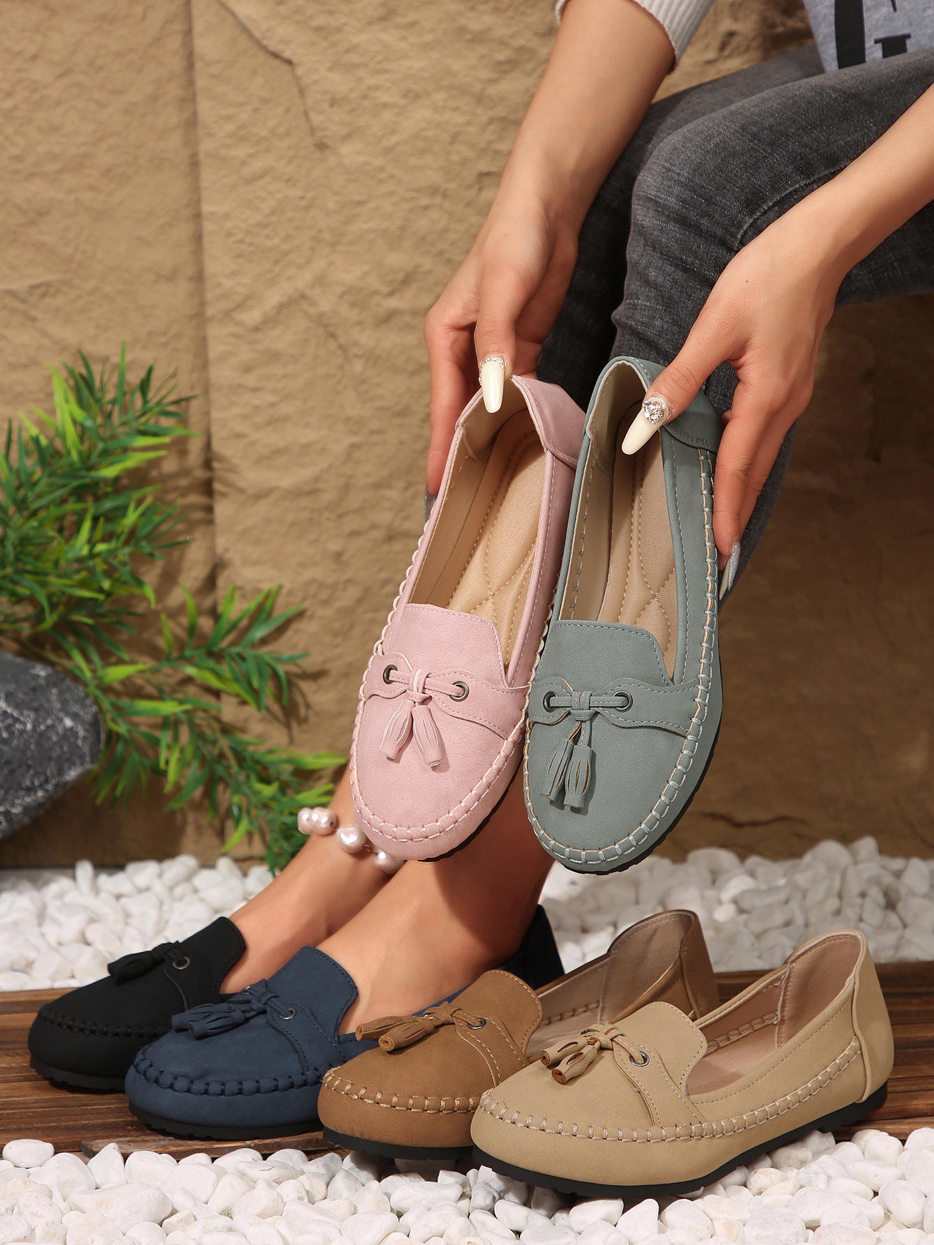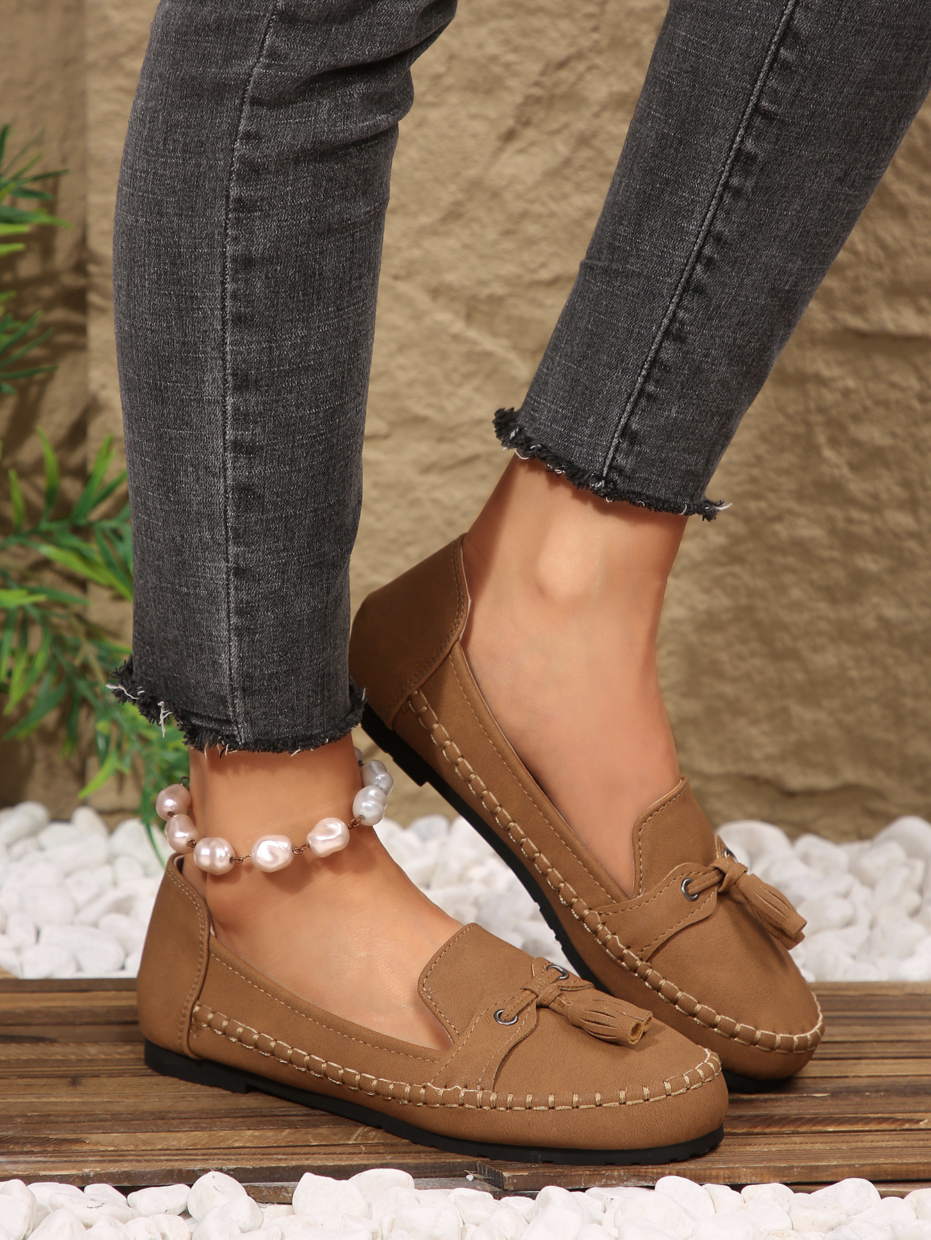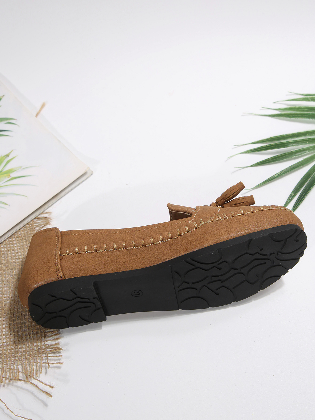 국경 2025 콩 신발 여성의 봄 새로운 패션 여성 신발 페달 캐주얼 가죽 신발 태슬 신발 여성 도매스토어 가기