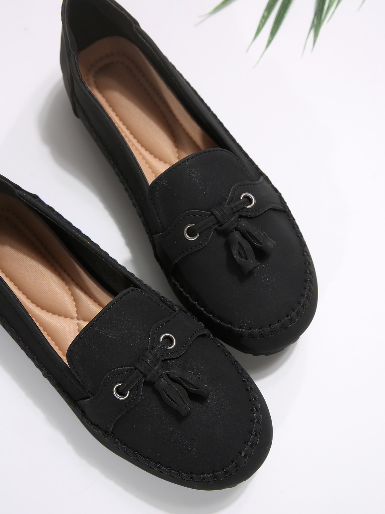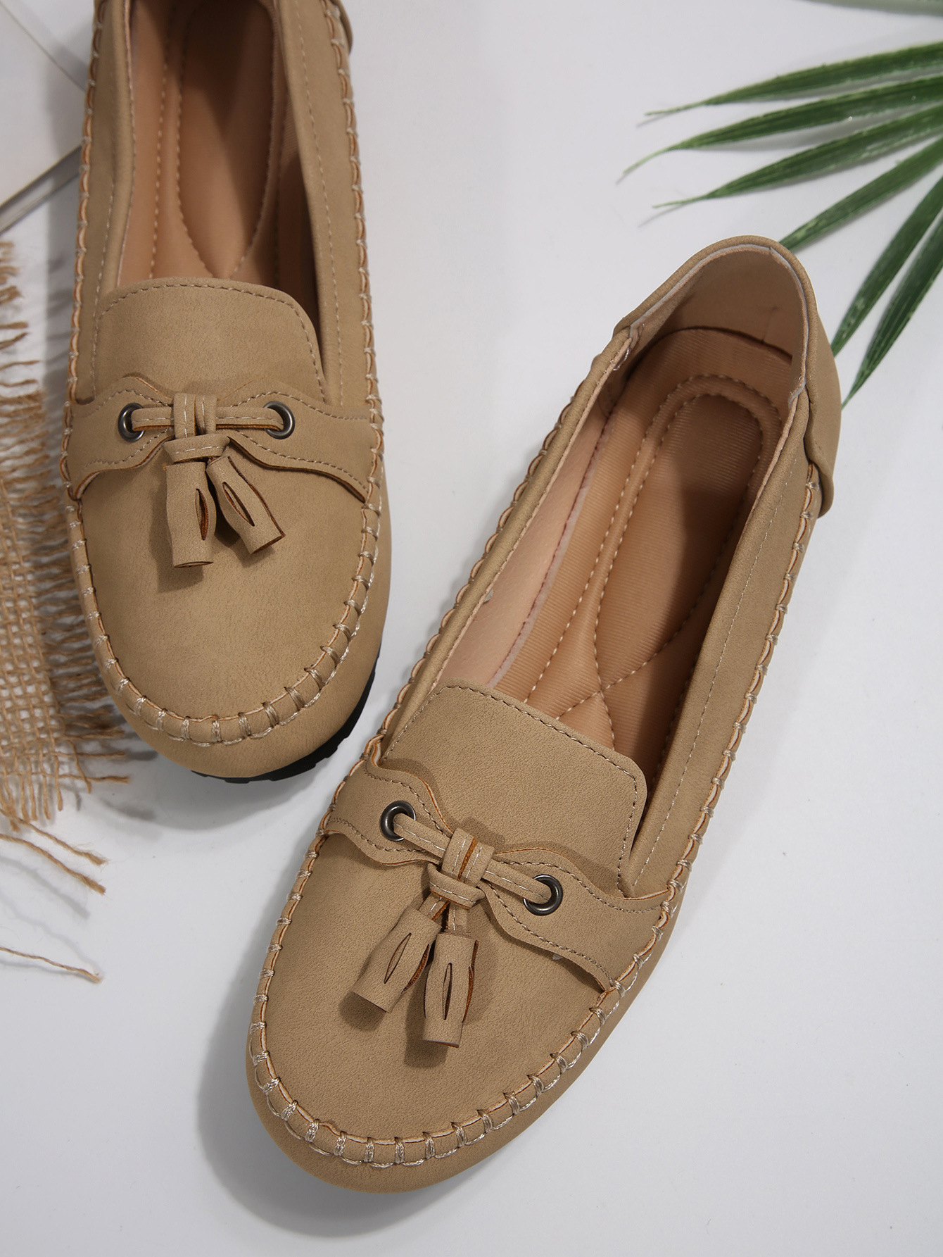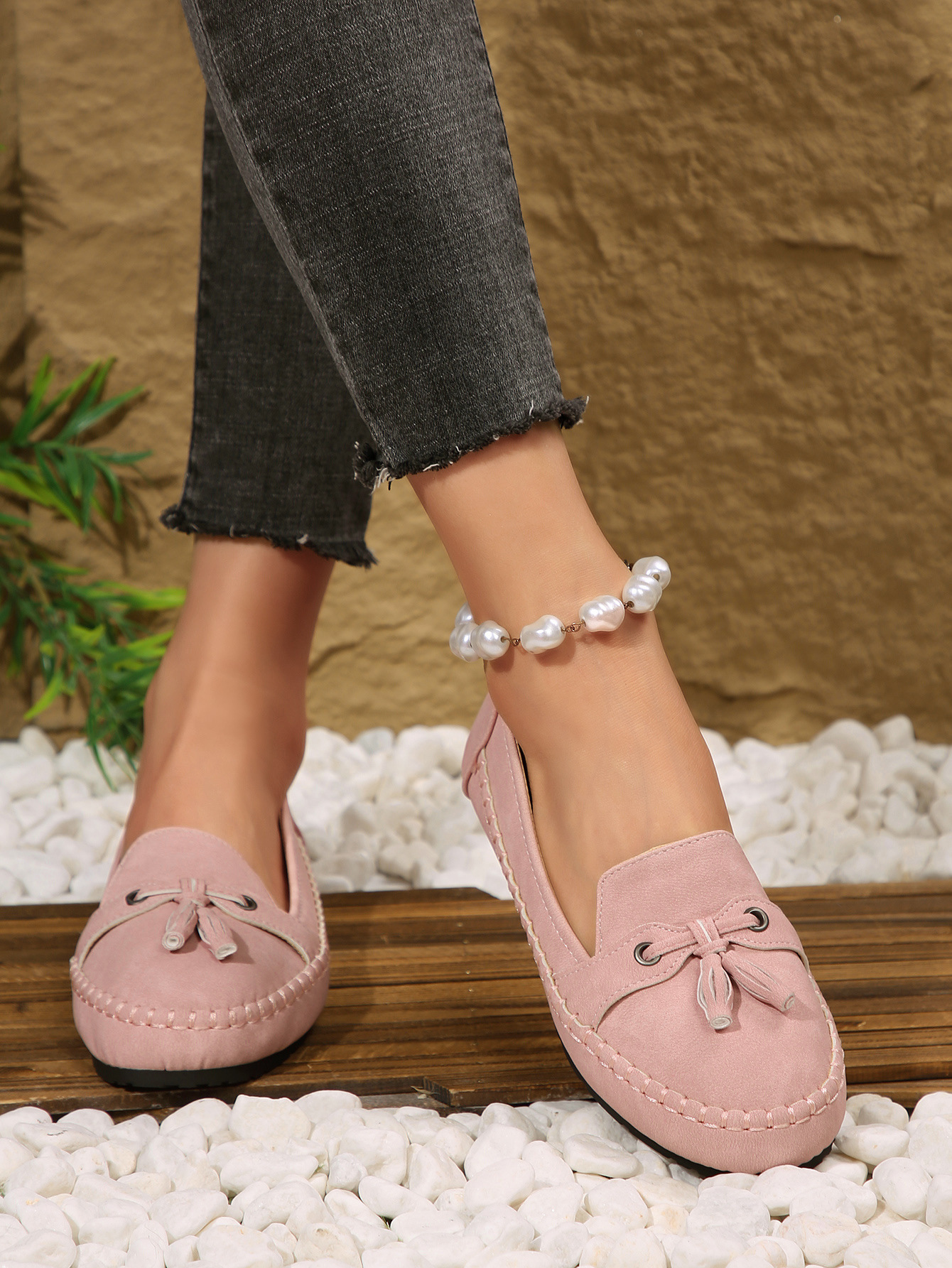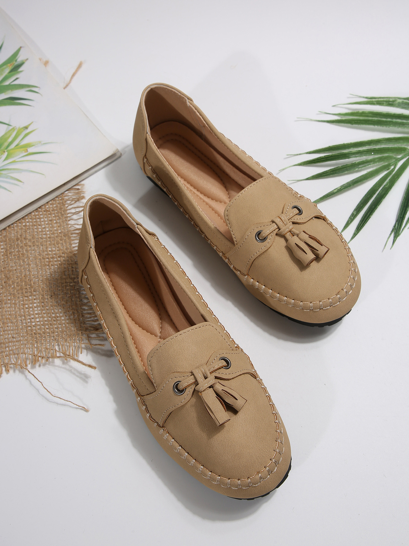 국경 2025 콩 신발 여성의 봄 새로운 패션 여성 신발 페달 캐주얼 가죽 신발 태슬 신발 여성 도매스토어 가기