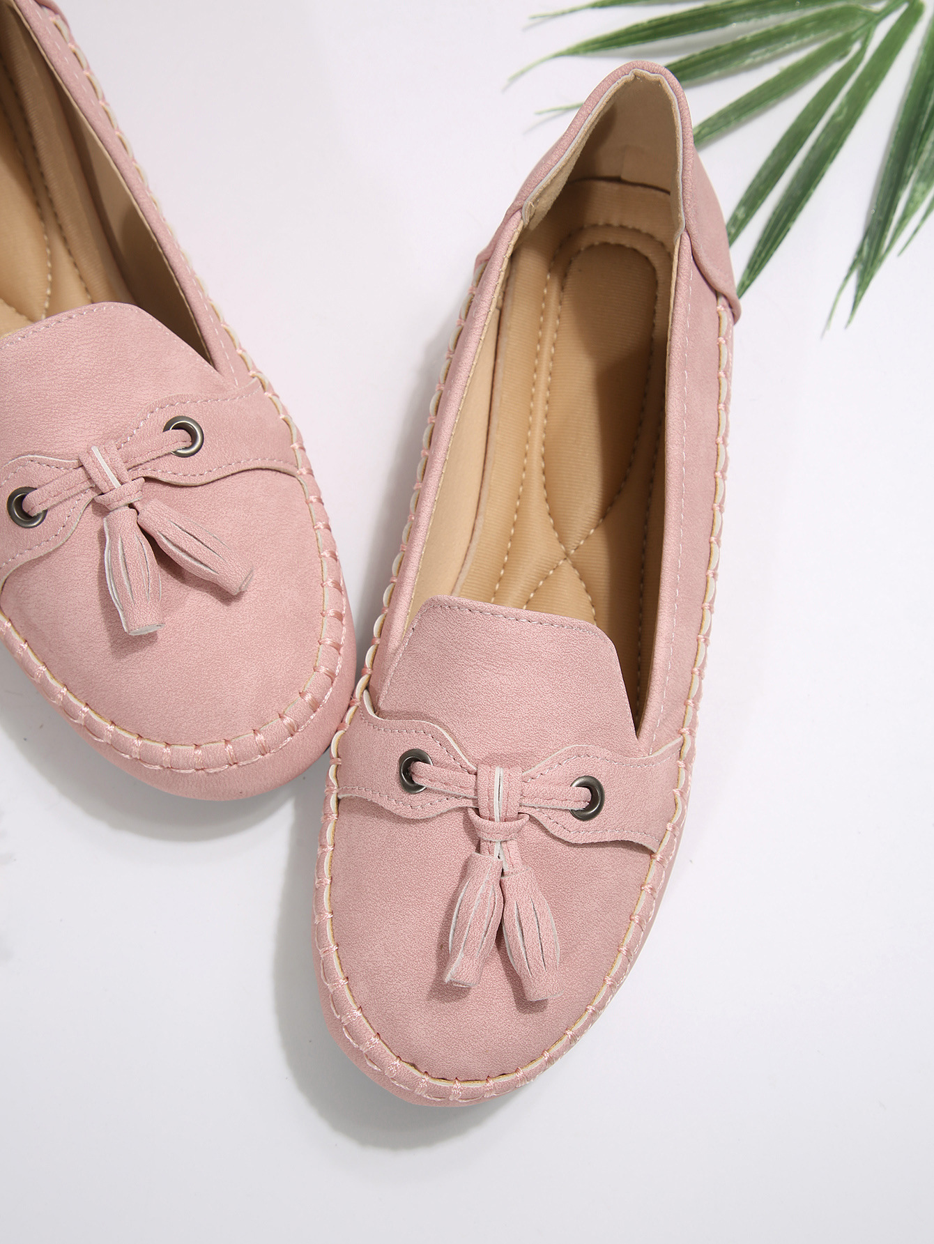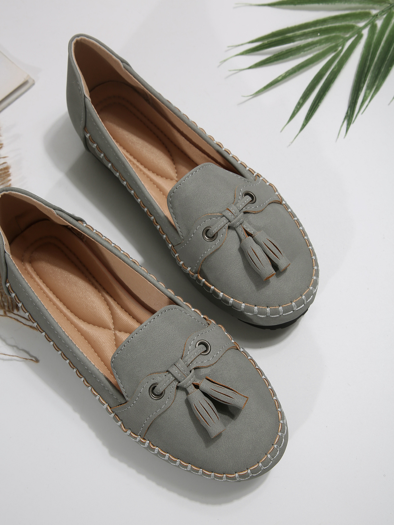 국경 2025 콩 신발 여성의 봄 새로운 패션 여성 신발 페달 캐주얼 가죽 신발 태슬 신발 여성 도매