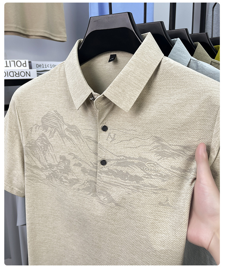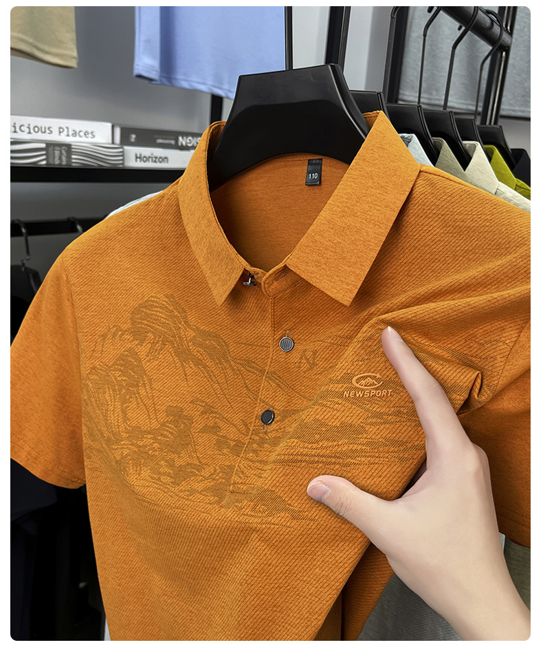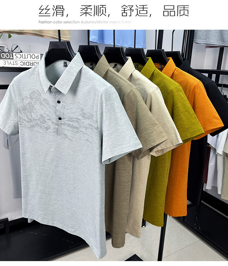 남성 비즈니스 캐주얼 옷깃 반팔 폴로 셔츠 2022 여름 신작 루즈하고 다재다능한 중년 통기성 티셔츠스토어 가기