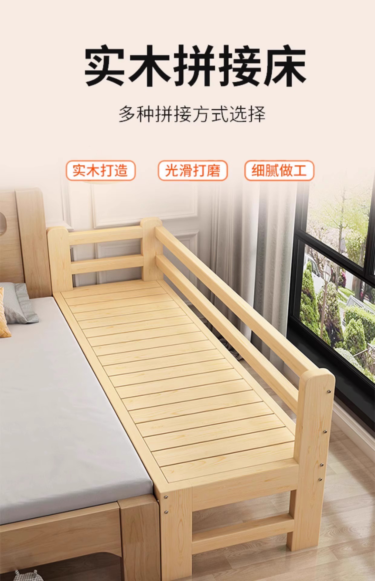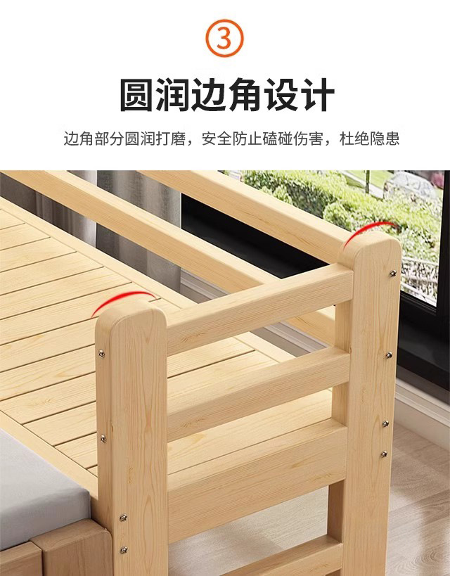 소년 소녀 싱글 침대 사이드 침대 어린이 스티칭 큰 침대를 사용자 정의 할 수있는 광대역 가드 레일이있는 단단한 나무 아기 스티칭 침대