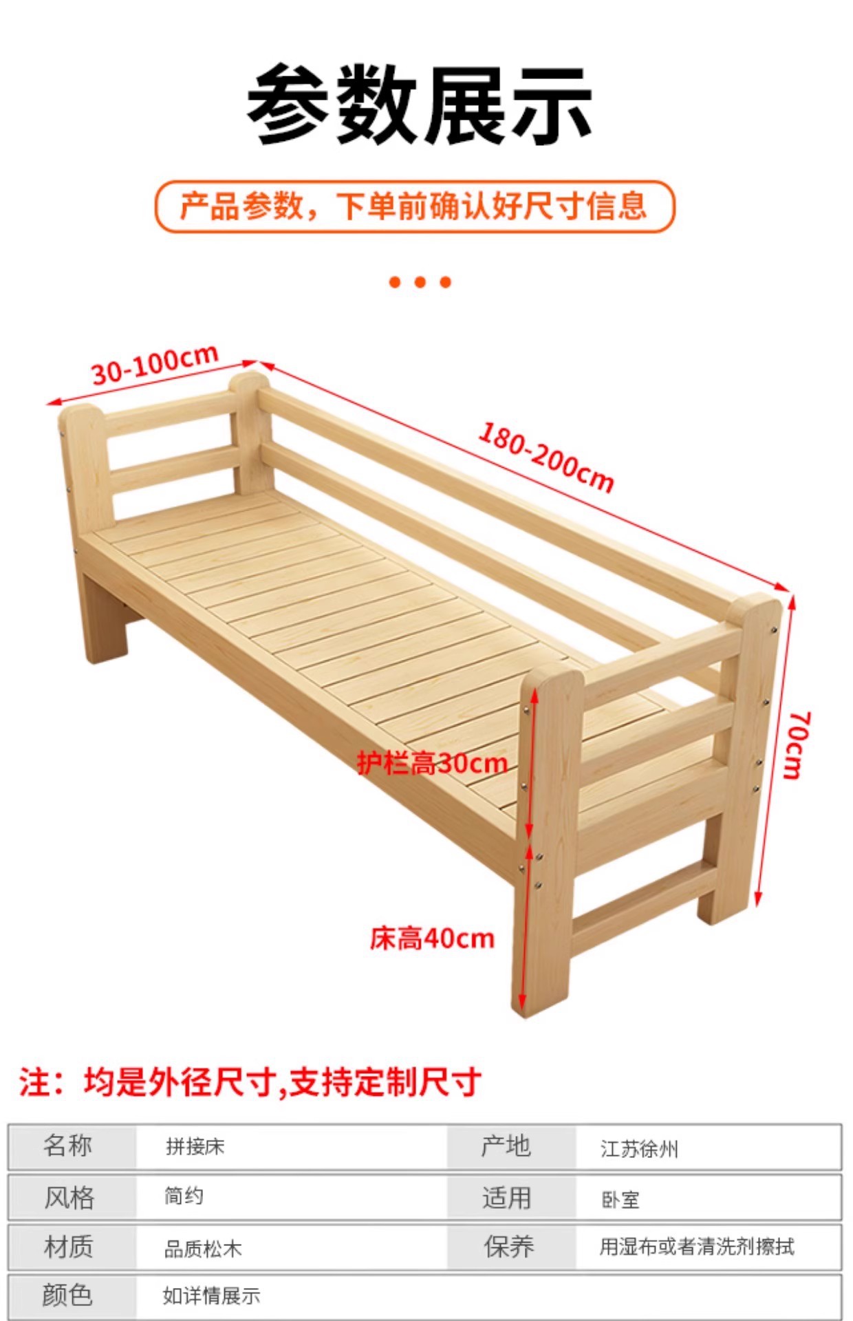 • 촘촘하게 포장된 침대보드, 3면 가드레일 높이 180*40*40