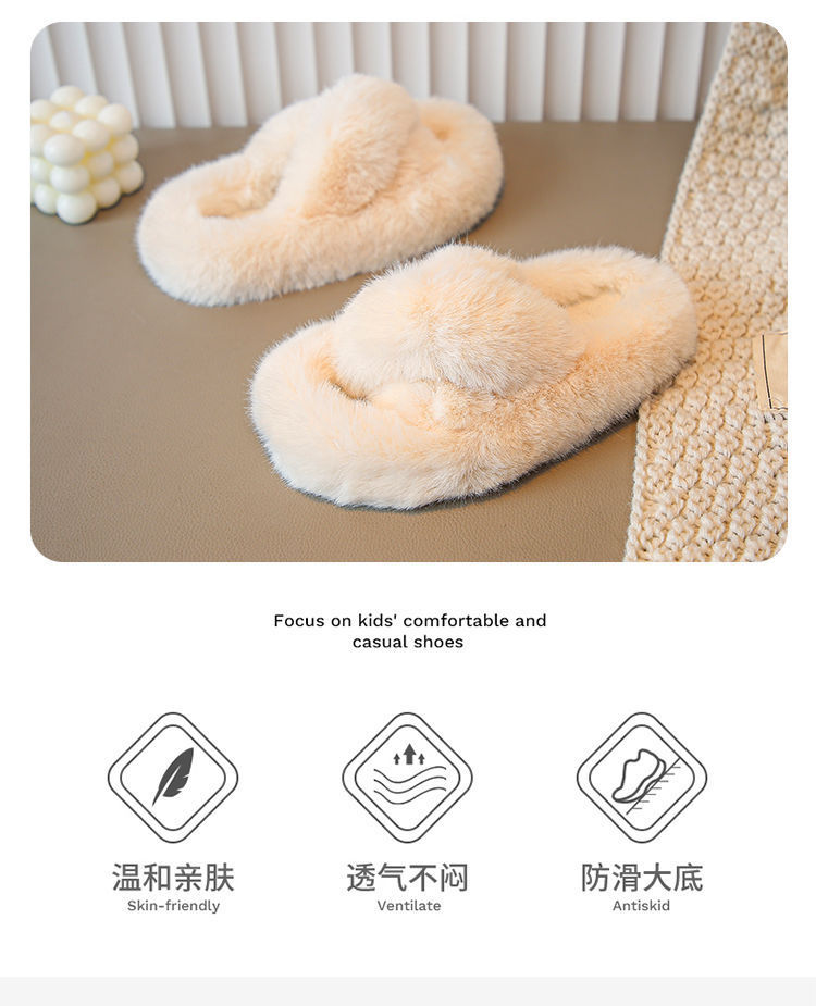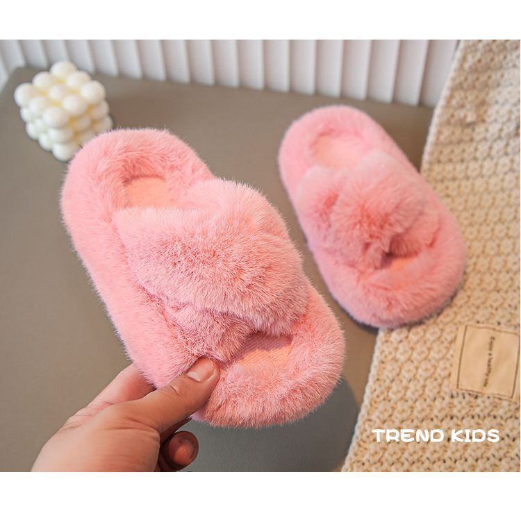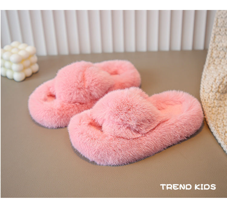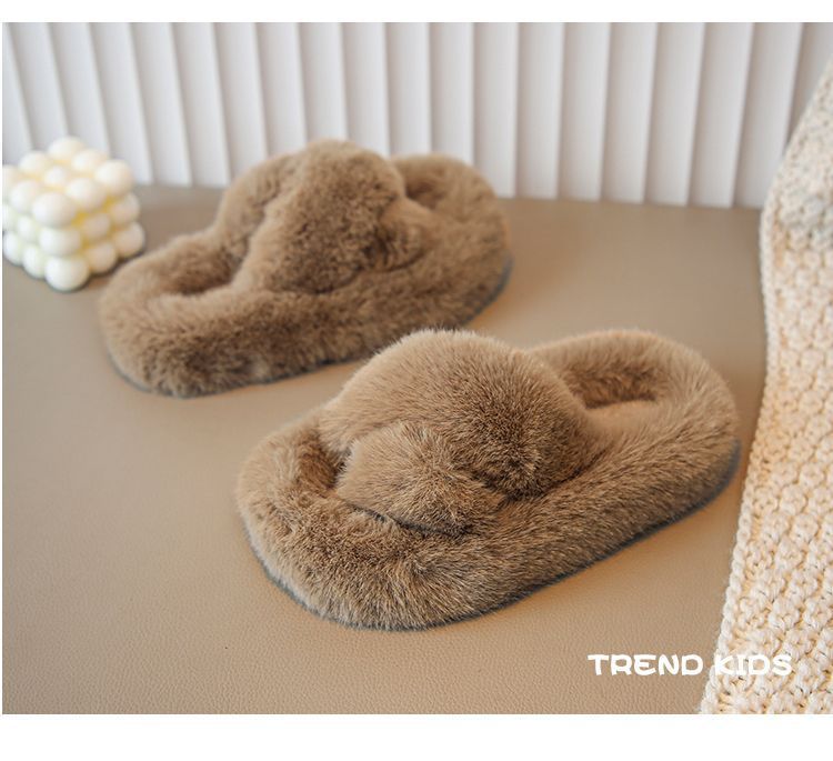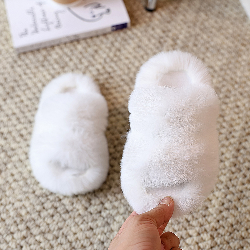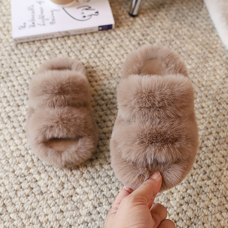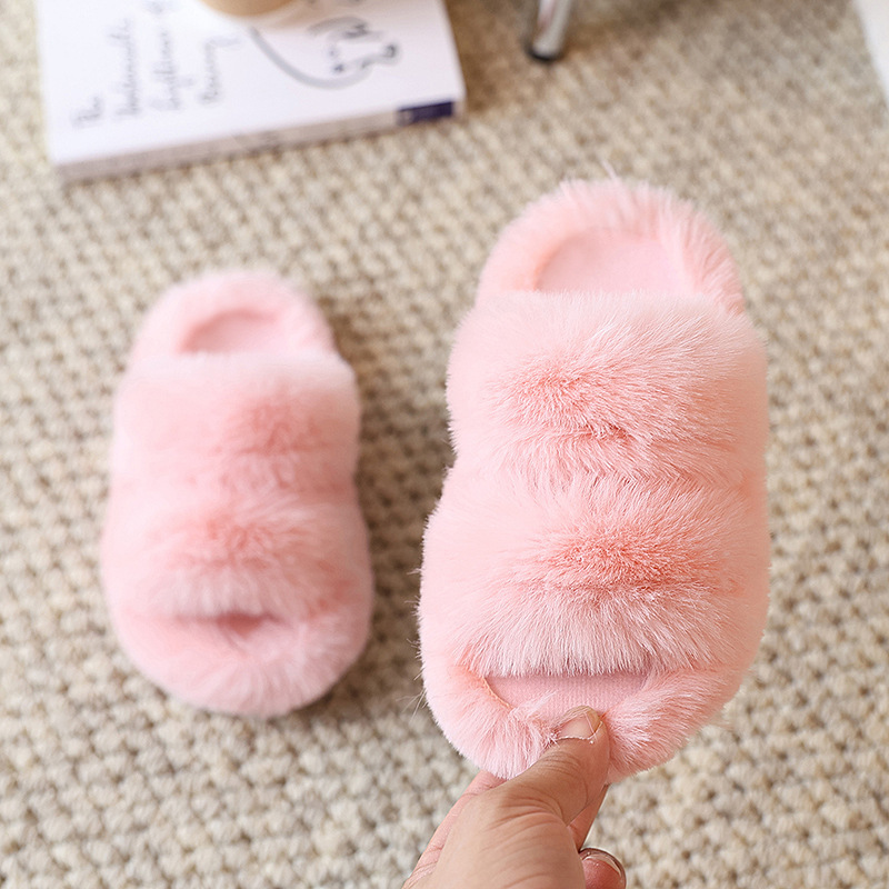 여자 모피 슬리퍼 겨울 새로운 두꺼운 따뜻한 면화 슬리퍼 여자를위한 실내 미끄럼 방지 아기 어린이 면화 신발