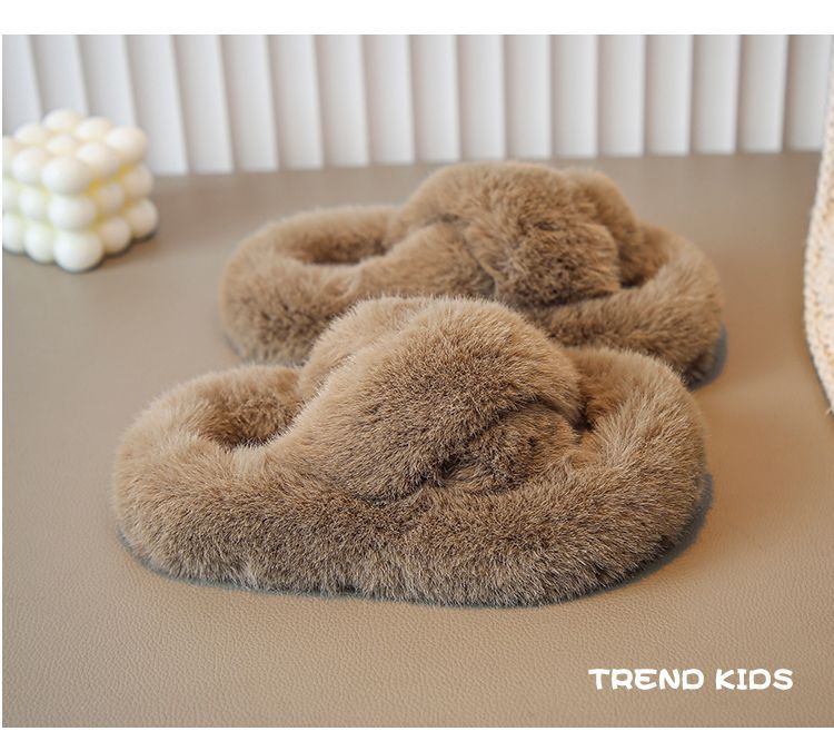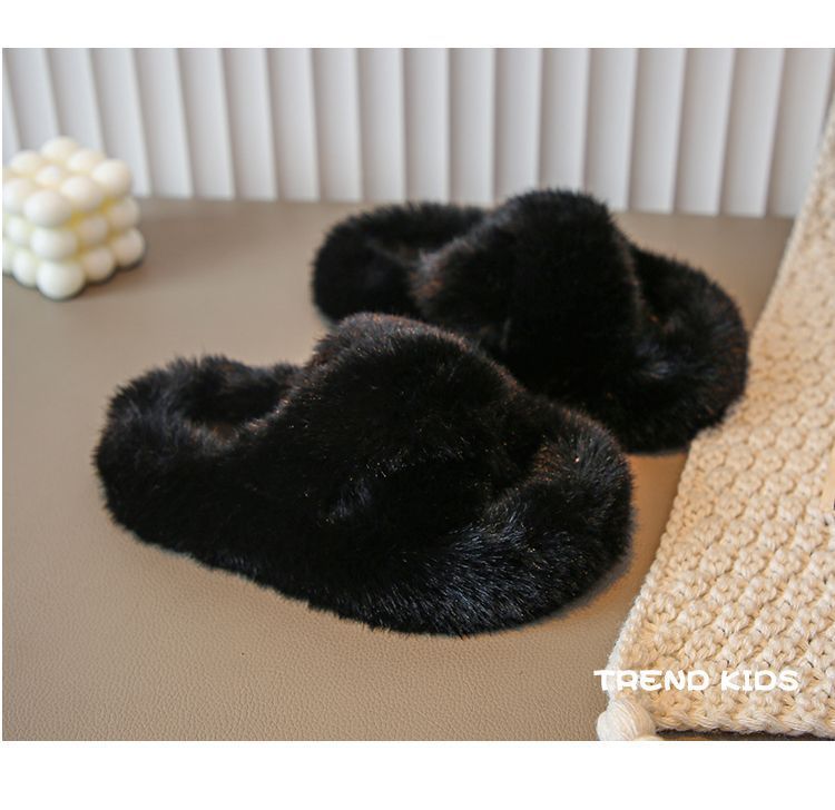 여자 모피 슬리퍼 겨울 새로운 두꺼운 따뜻한 면화 슬리퍼 여자를위한 실내 미끄럼 방지 아기 어린이 면화 신발스토어 가기