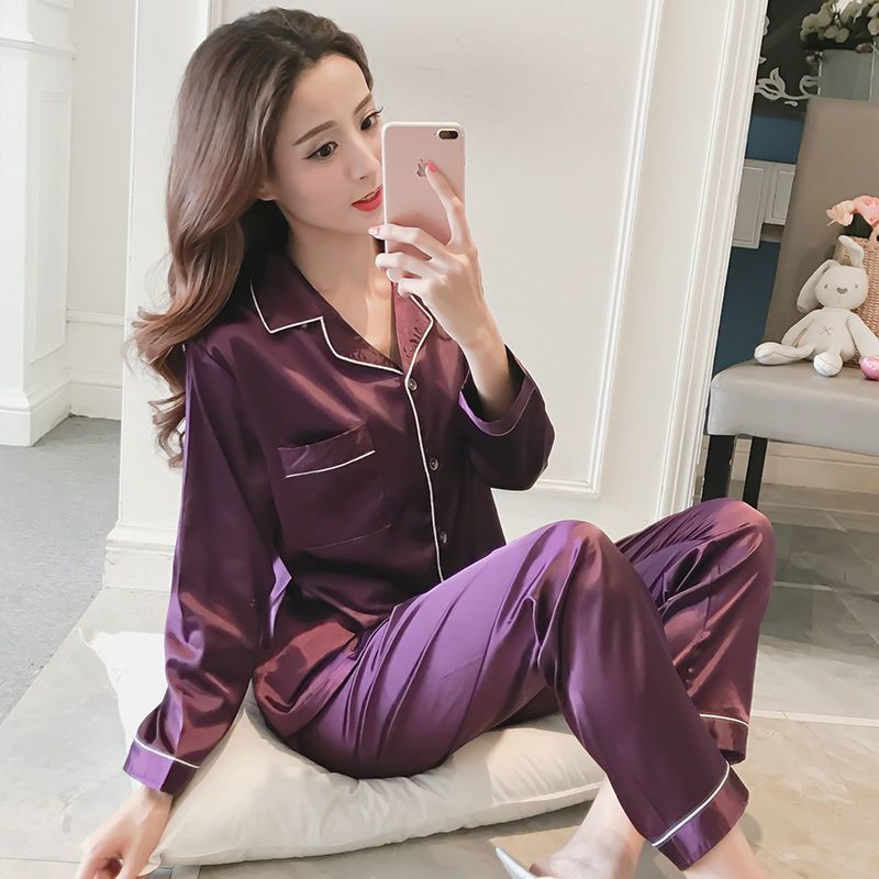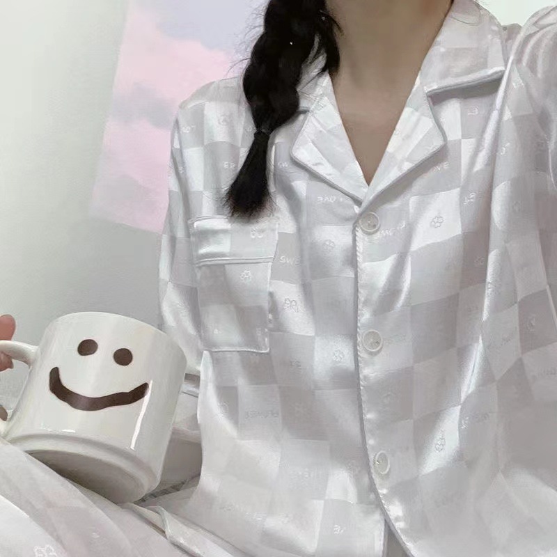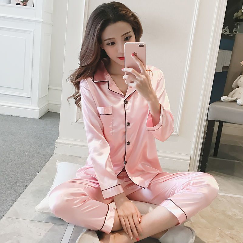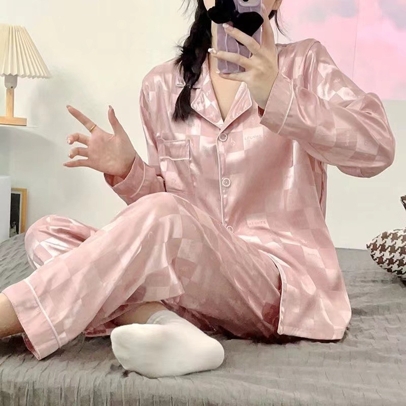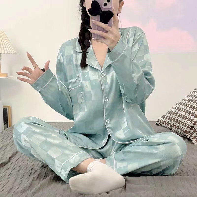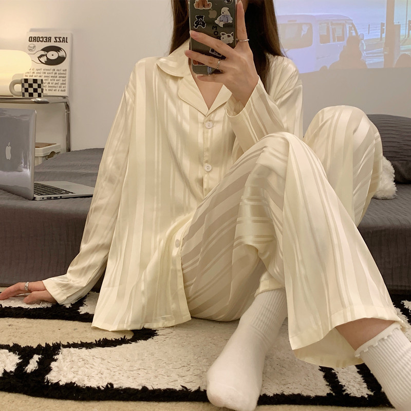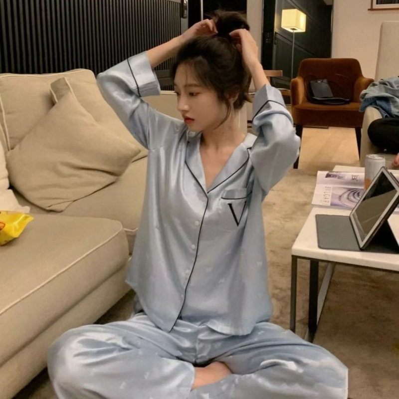 아이스 실크 잠옷 여성의 봄과 여름 얇은 긴 소매 하이 엔드 센스 2025 새로운 여름 착용 가능한 홈 의류 세트스토어 가기