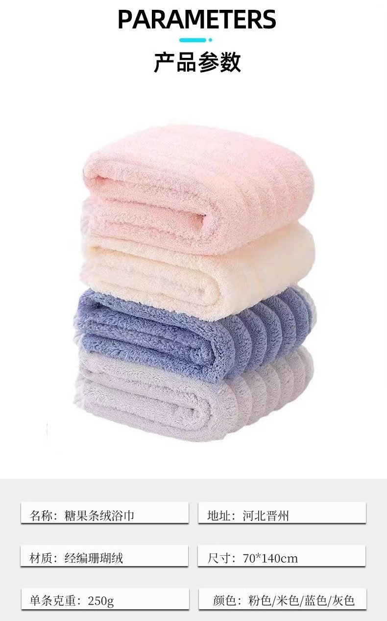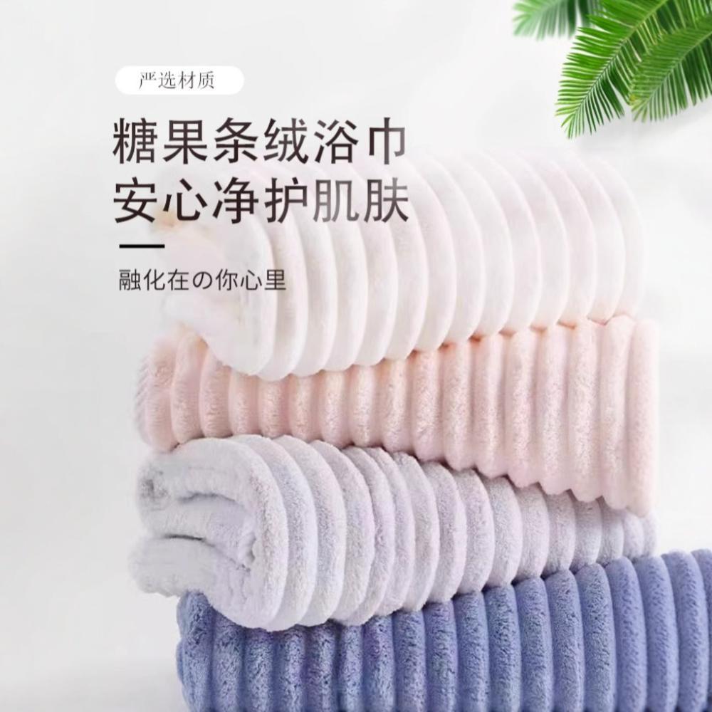 보푸라기가 없는 두꺼운 산호 벨벳 캔디 스트립 목욕 타월, 목욕용 흡수성, 성인용 가정용 대형 제품, 제조업체 재고 있음스토어 가기