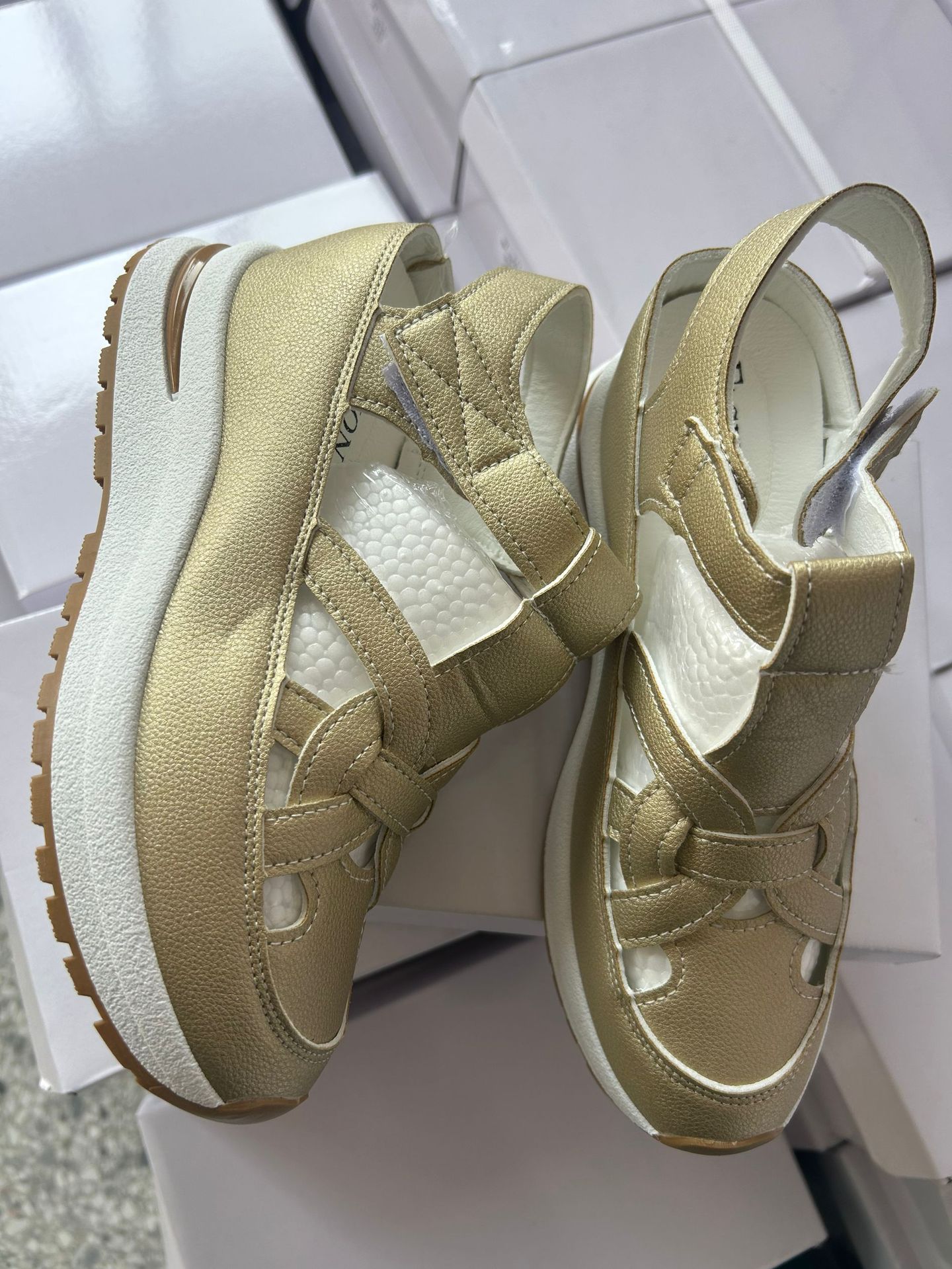 여름 신작 웨지 샌들, 발가락이 빈 통기성 여성 대외 무역 대형 플랫폼 두꺼운 밑창 벨크로 여성 신발 사이즈 43스토어 가기