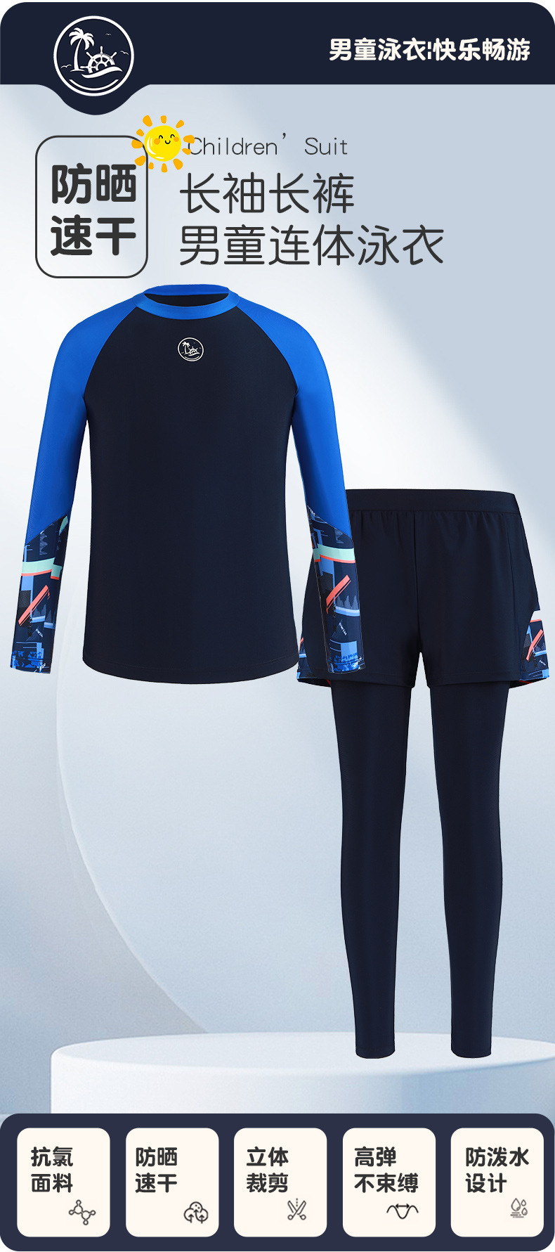 남학생 세트 수영복 2025 한국형 긴 소매 선스크린 분할 수영복 대형 어린이 수영 트렁크
