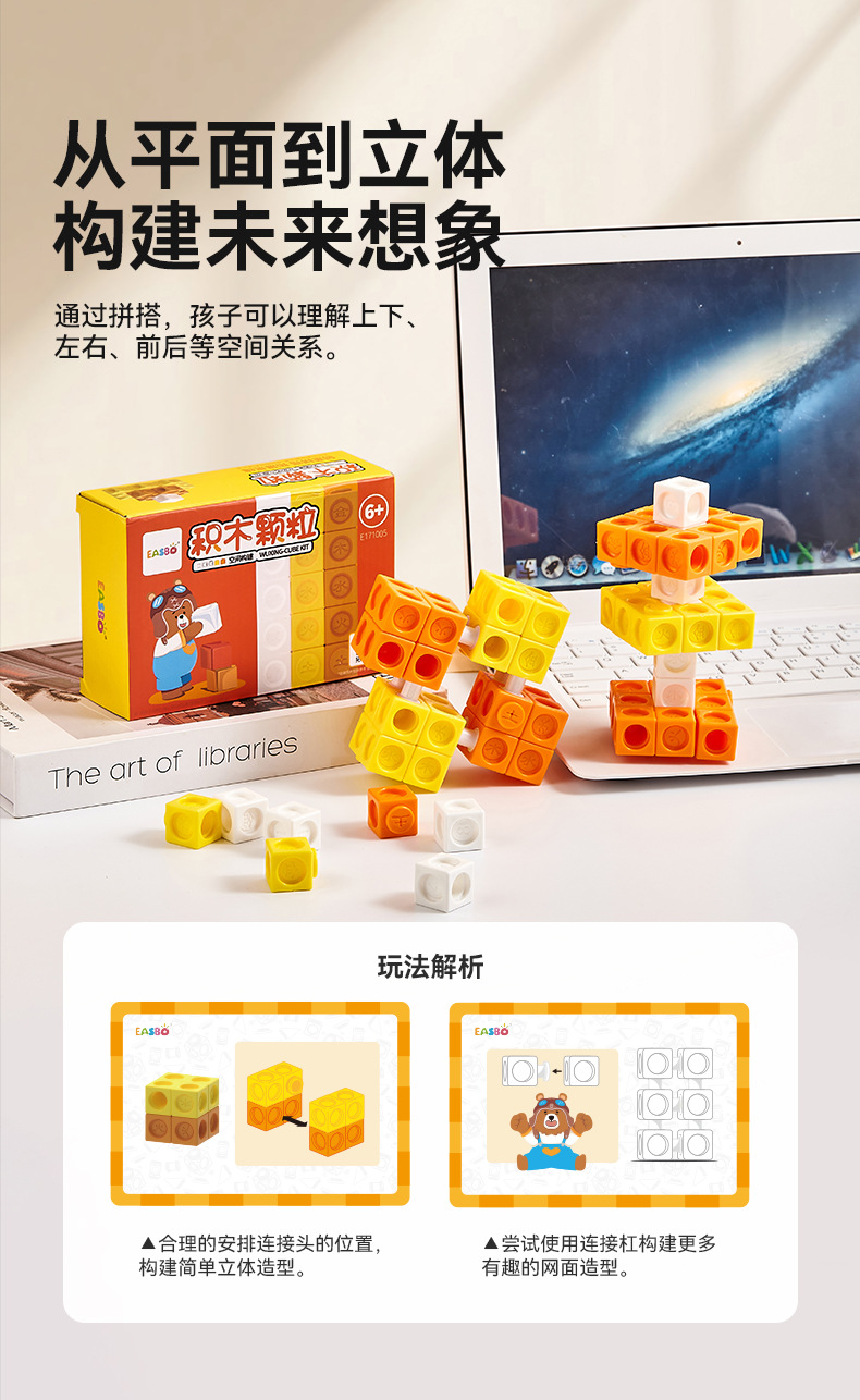 EASBO 공간 빌딩 블록 장난감 교육 계발 수학적 사고 운동 DIY 조립 입자 어린이 조기 교육