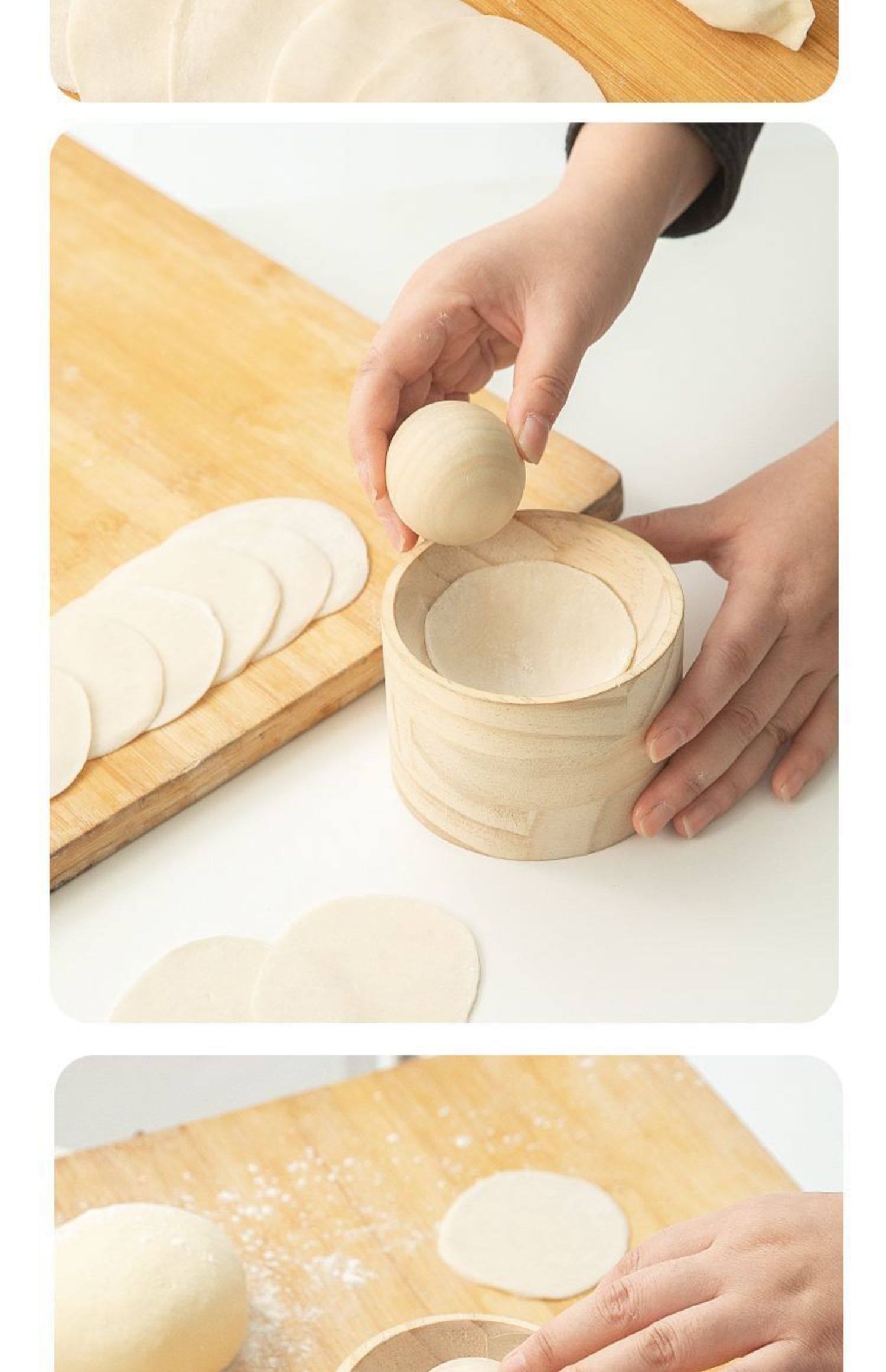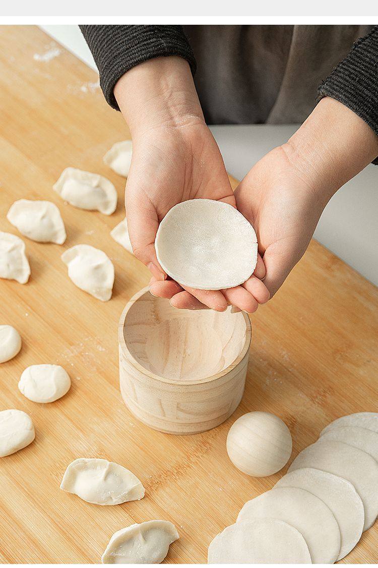 2025 새로운 만두 나무 라운드 프레스 백 만두 래퍼 아티팩트 주방 가정용 만두 래퍼 금형 도매스토어 가기
