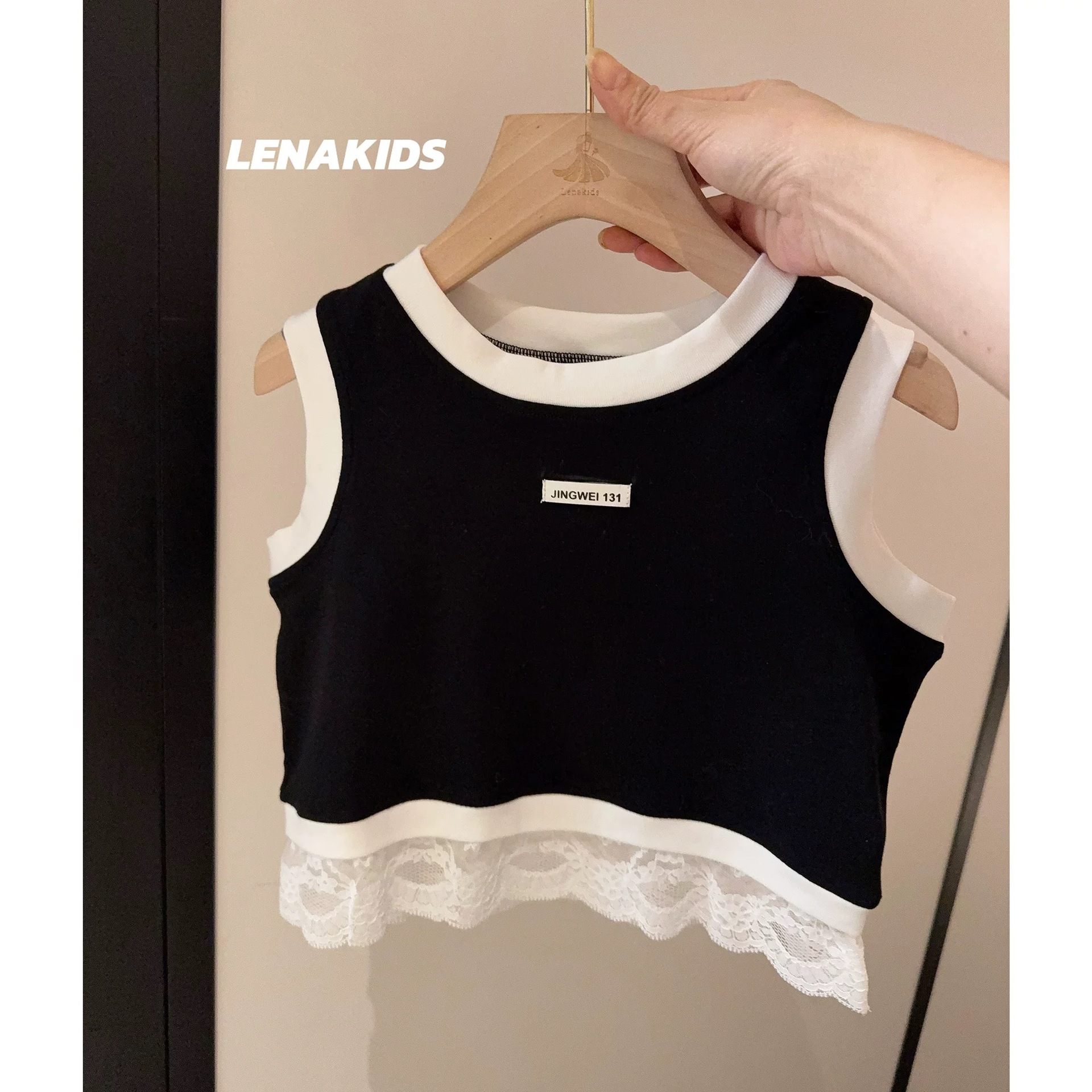 여자 조끼 2025 새로운 여름 어린이 퓨어 코튼 티셔츠 유행 올매치 탑 걸스 슬링 여름 웨스턴 스타일스토어 가기