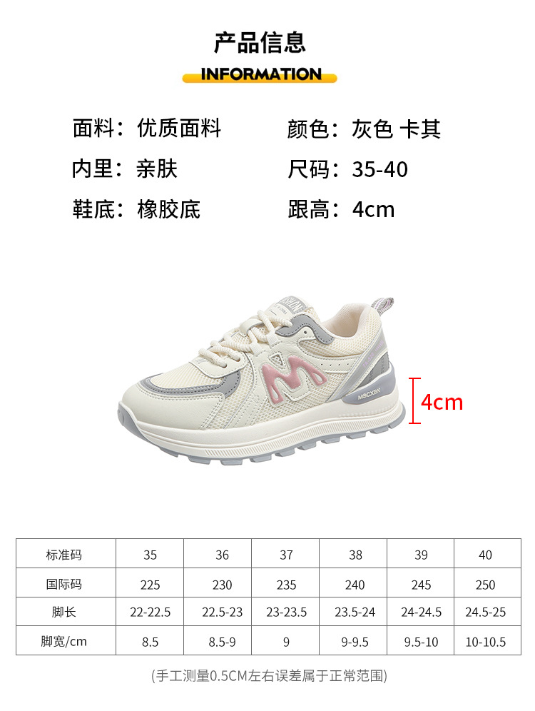 토레 신발 여성용 발 작은 2025 봄 새로운 도착 신발 올매치 두꺼운 단독 증가 소프트 단독 경량 캐주얼 운동화스토어 가기