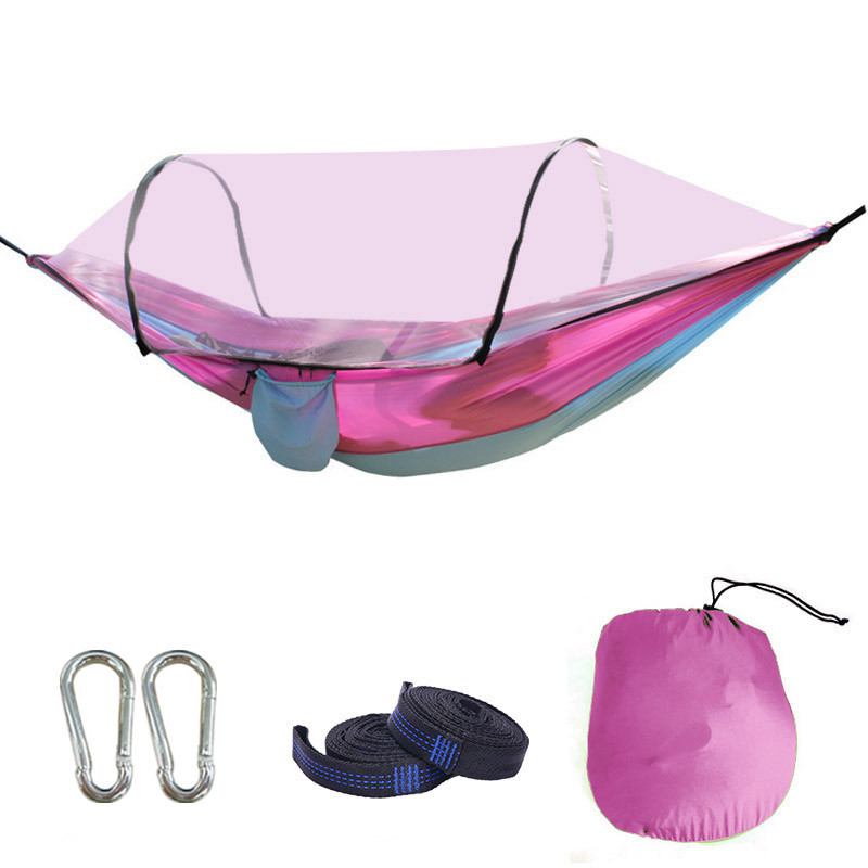 완전 자동 빠른 개방형 지지대 모기 방지 모기장 해먹 야외 캠핑 캠핑 전복 방지 통기성 메쉬 해먹 더블