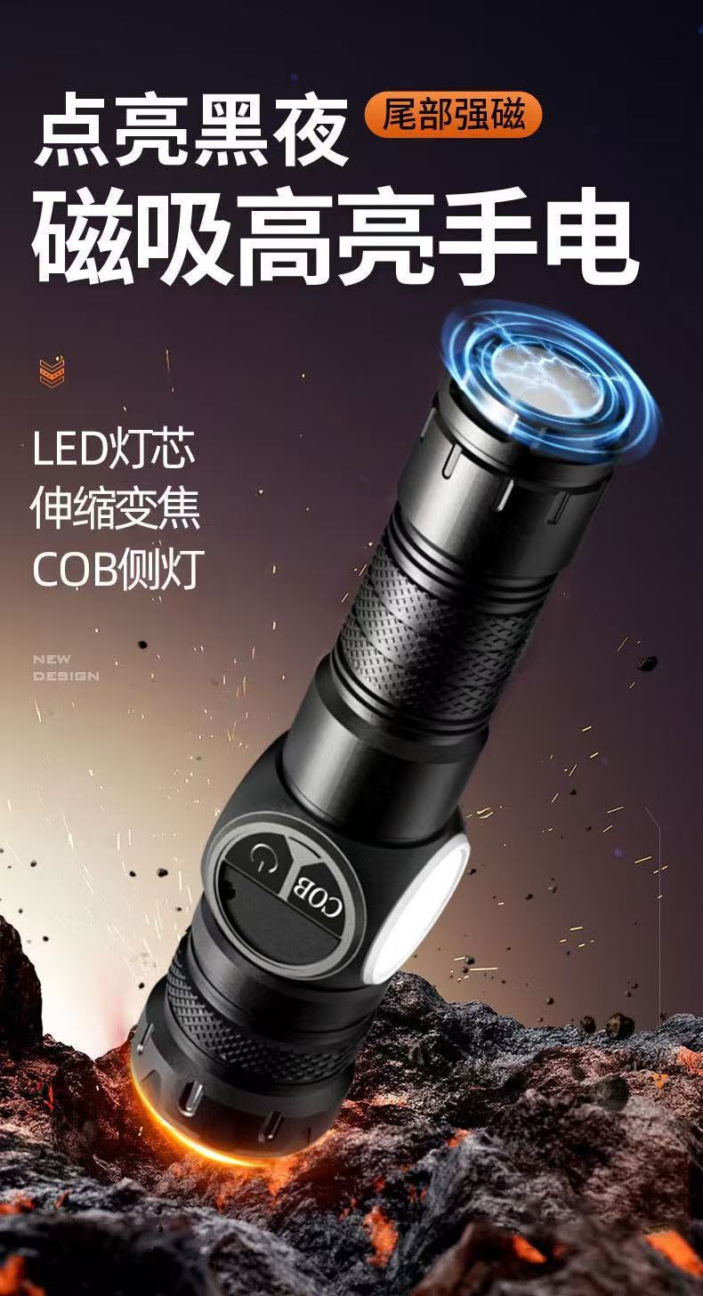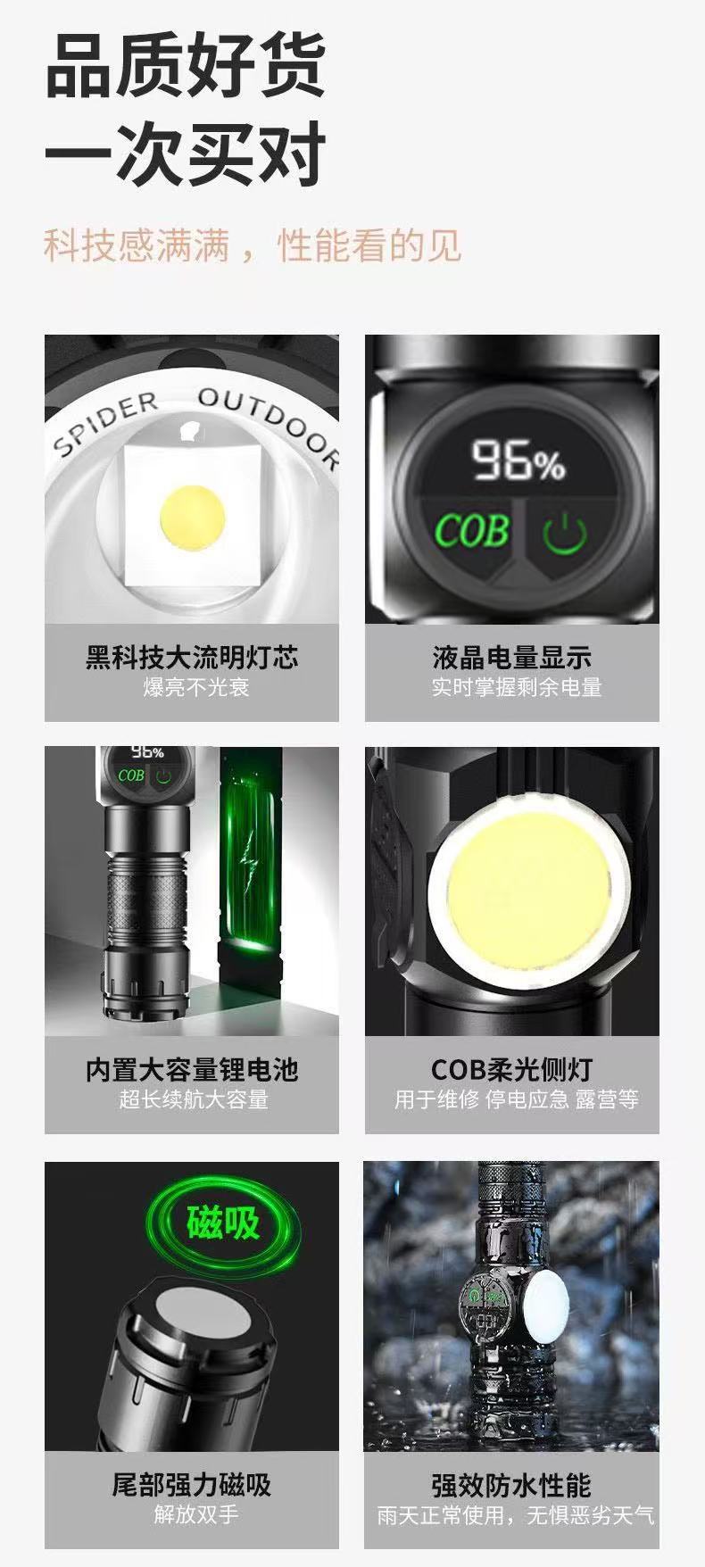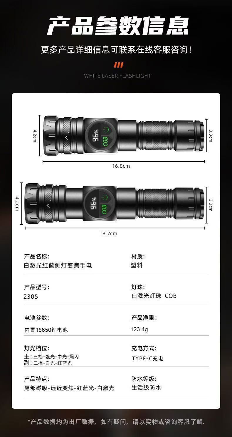• 2305-지능형 디지털 디스플레이 손전등 [자기 흡입 + 테일 로프]