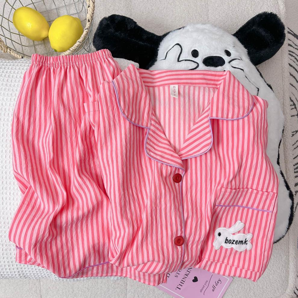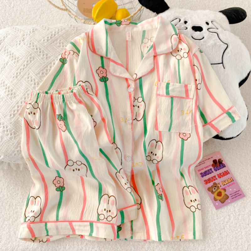 2025 새로운 여름 클라우드 코튼 카디건 옷깃 달콤한 소녀 잠옷 반팔 반바지 여성 홈웨어 세트