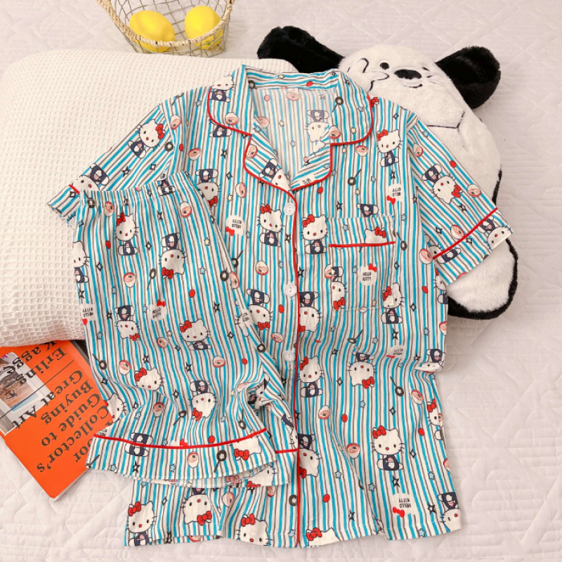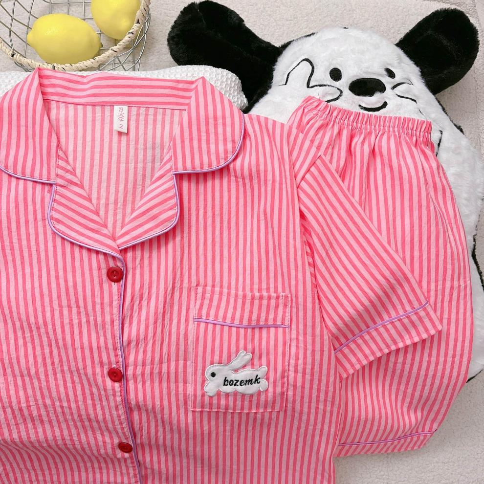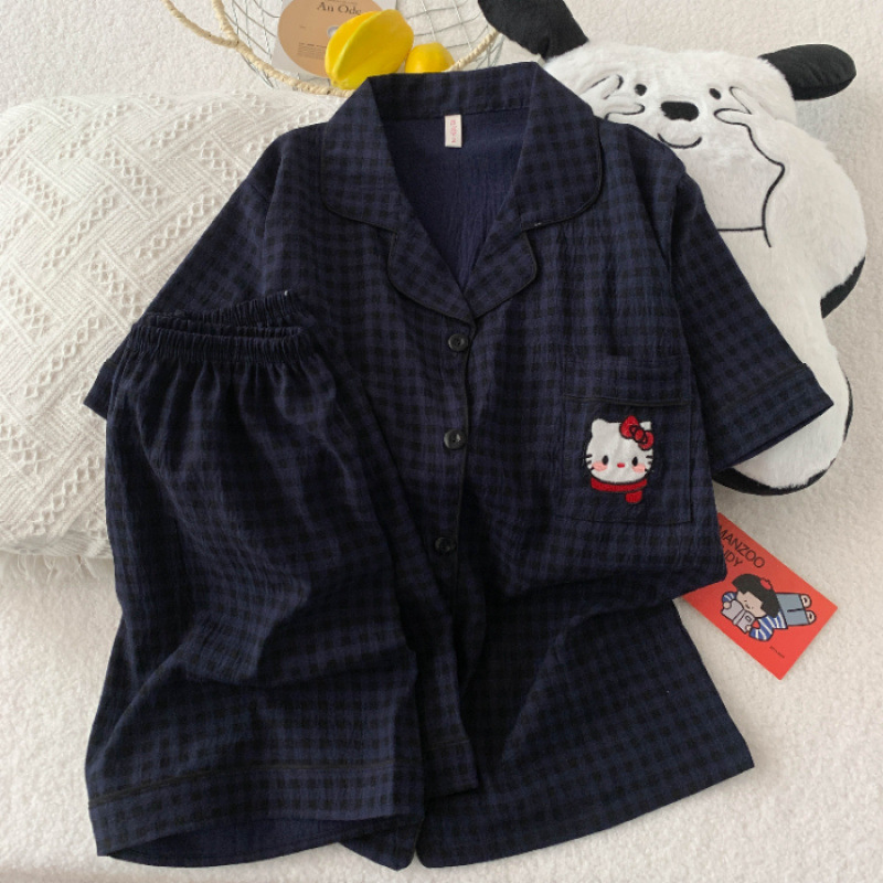 2025 새로운 여름 클라우드 코튼 카디건 옷깃 달콤한 소녀 잠옷 반팔 반바지 여성 홈웨어 세트스토어 가기