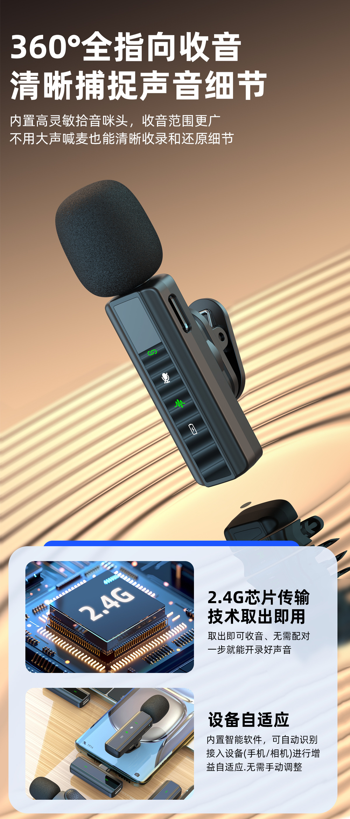 새로운 개인 모델 J7 무선 칼라 클립 마이크 한 드래그 두 떨림 라이브 VLOG 촬영 라디오 무선 마이크스토어 가기