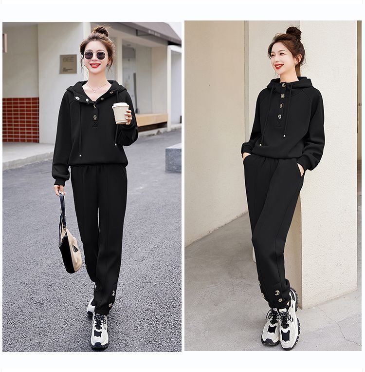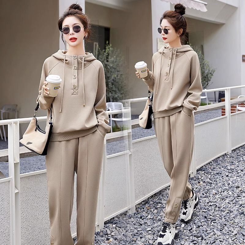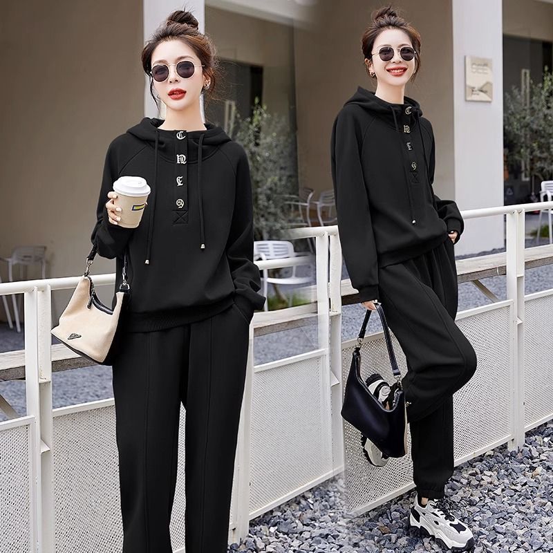 스포츠 세트 여자 2025 봄과 가을 신간 서양식 루즈 스웨터 겨울 통통녀 봄과 가을 투피스 세트