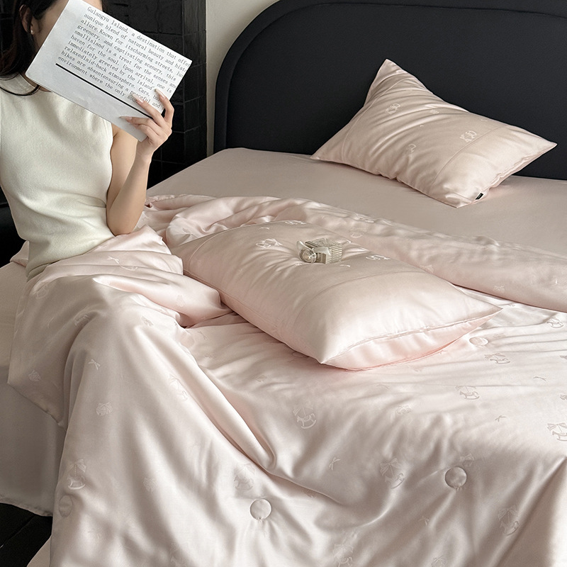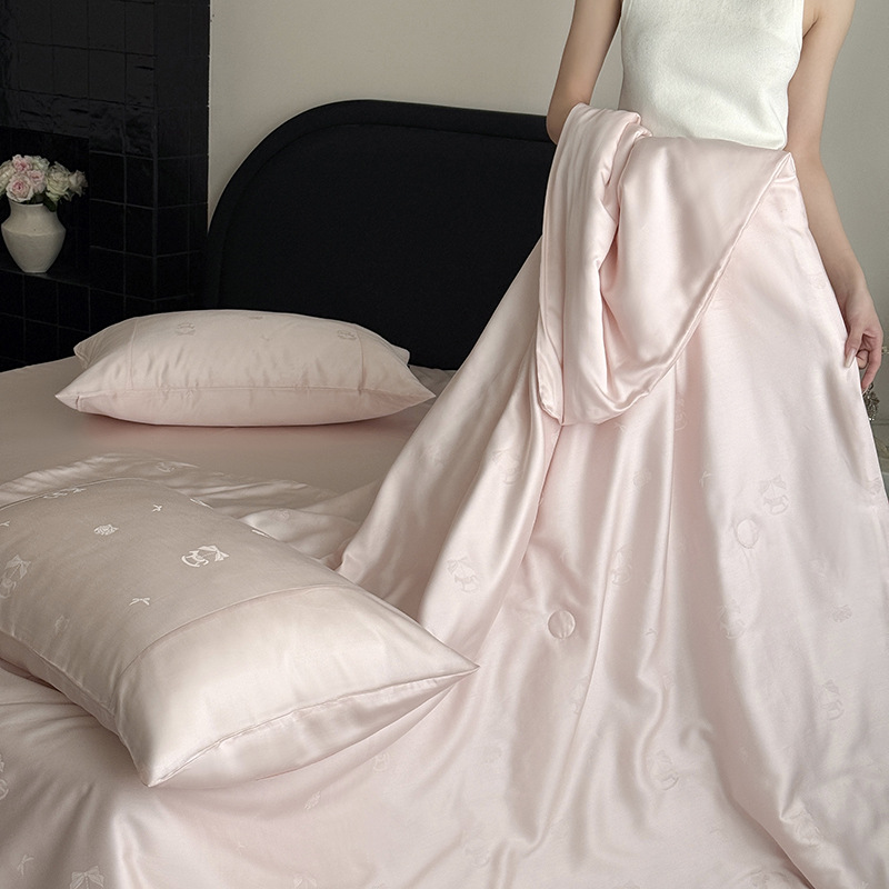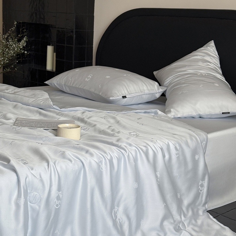 고급 자카드 60 란징 텐셀 여름 쿨 이불 4 피스 침대 모자 아이스 실크 쿨 에어컨 이불 얇은 이불 코어스토어 가기