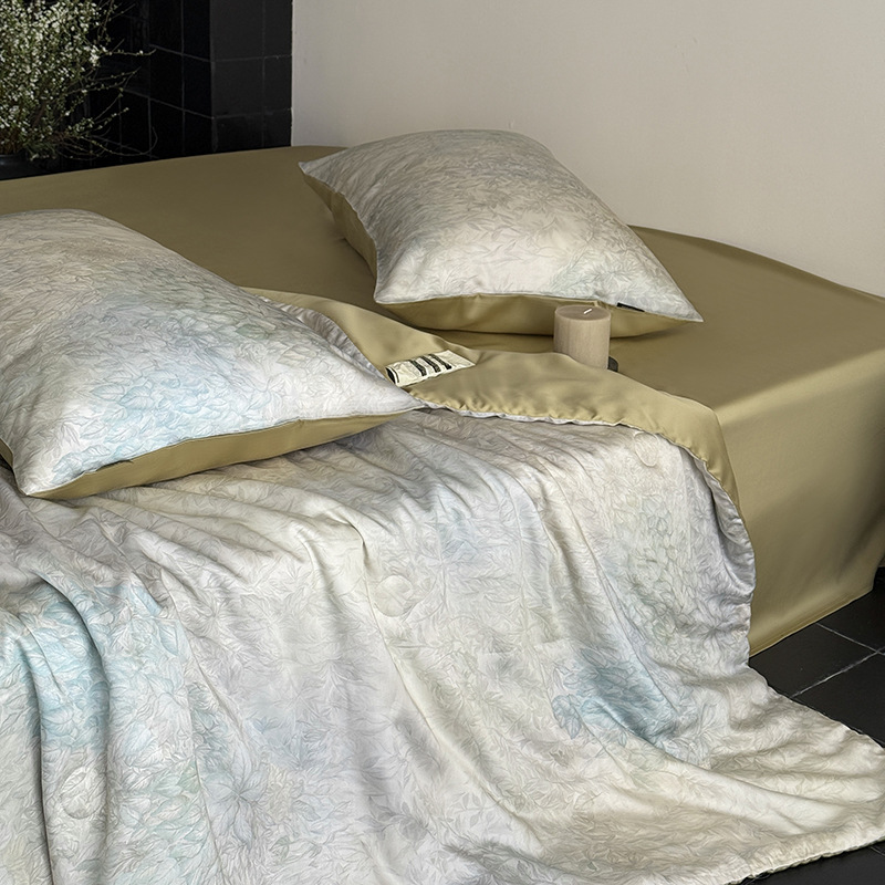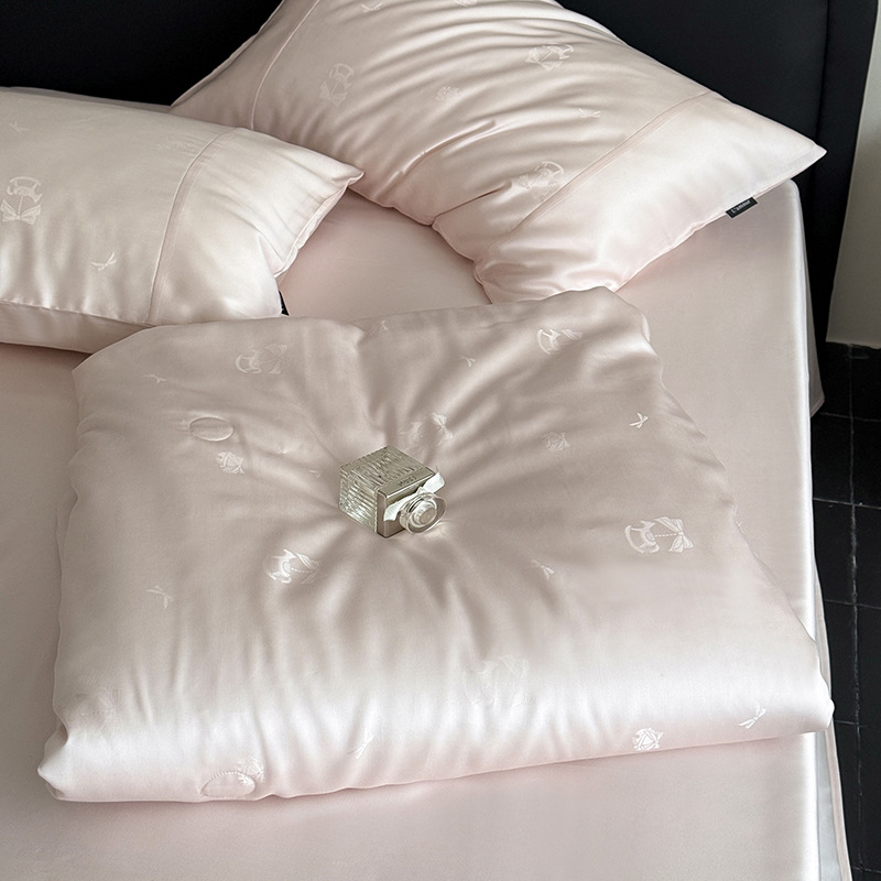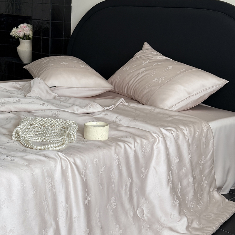 고급 자카드 60 란징 텐셀 여름 쿨 이불 4 피스 침대 모자 아이스 실크 쿨 에어컨 이불 얇은 이불 코어