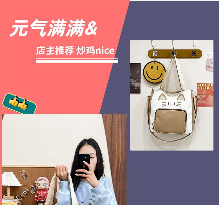 单肩包日系ins学生手提袋补习袋帆布斜挎包初中女孩大容量上课