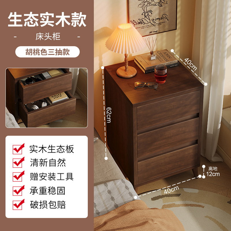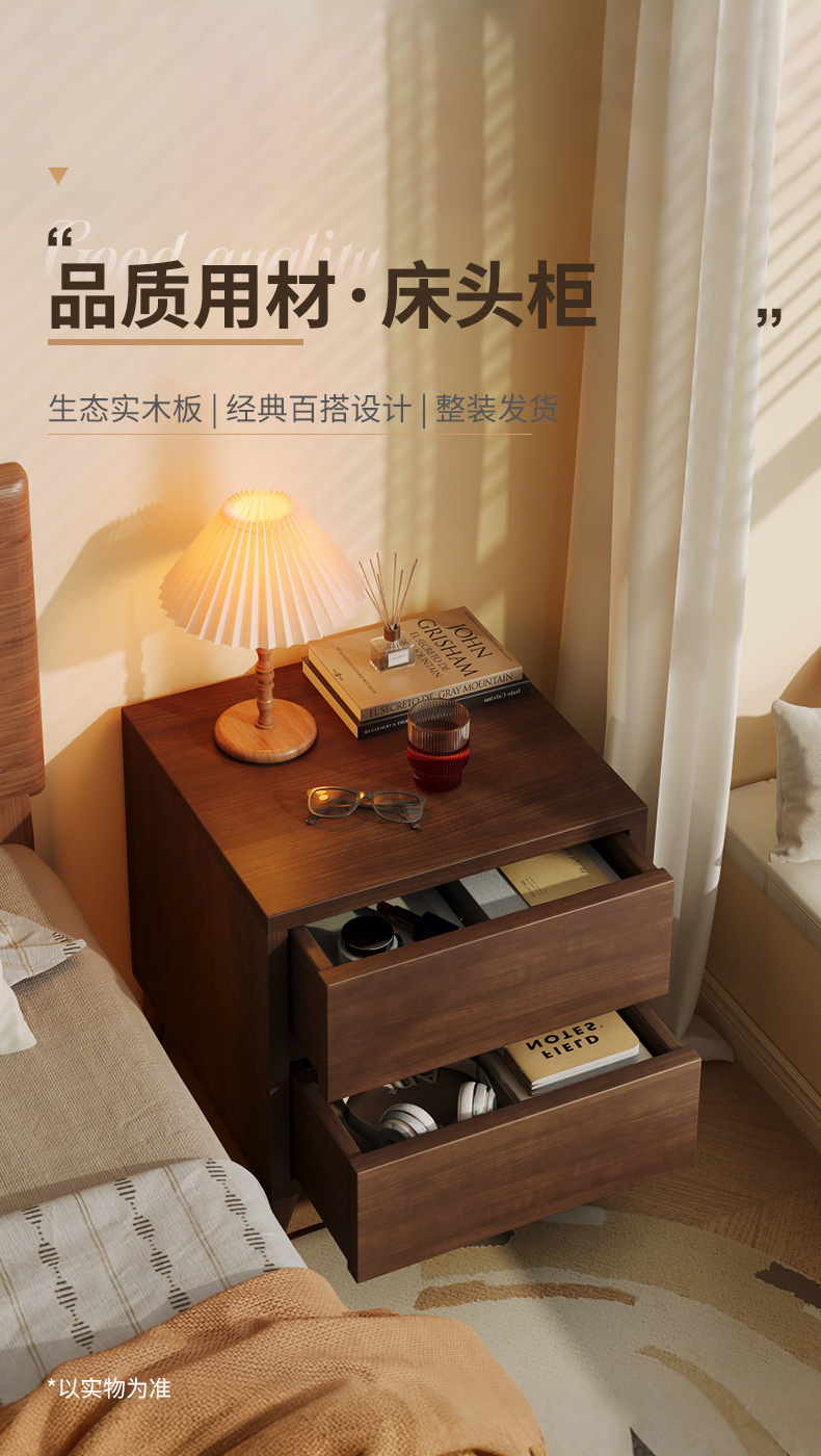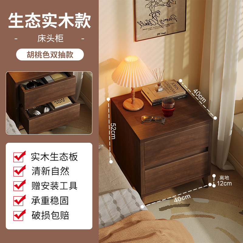 实木床头柜中古风储物柜一体小柜子家用卧室简易置物柜床边收纳柜