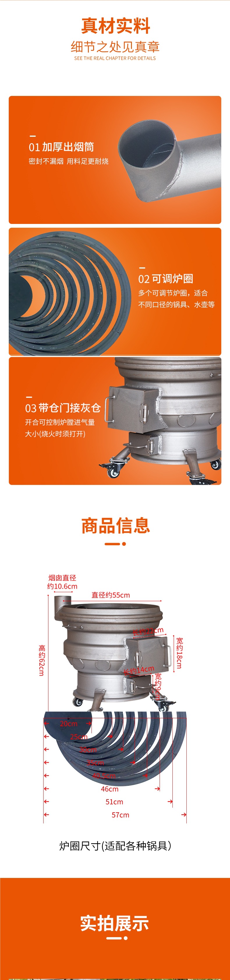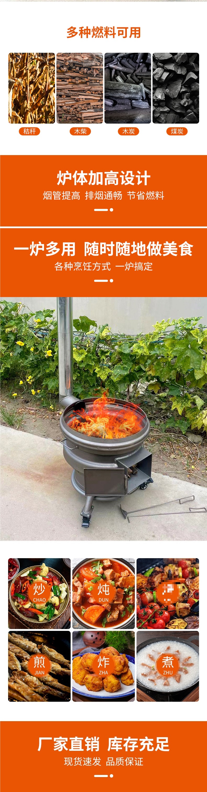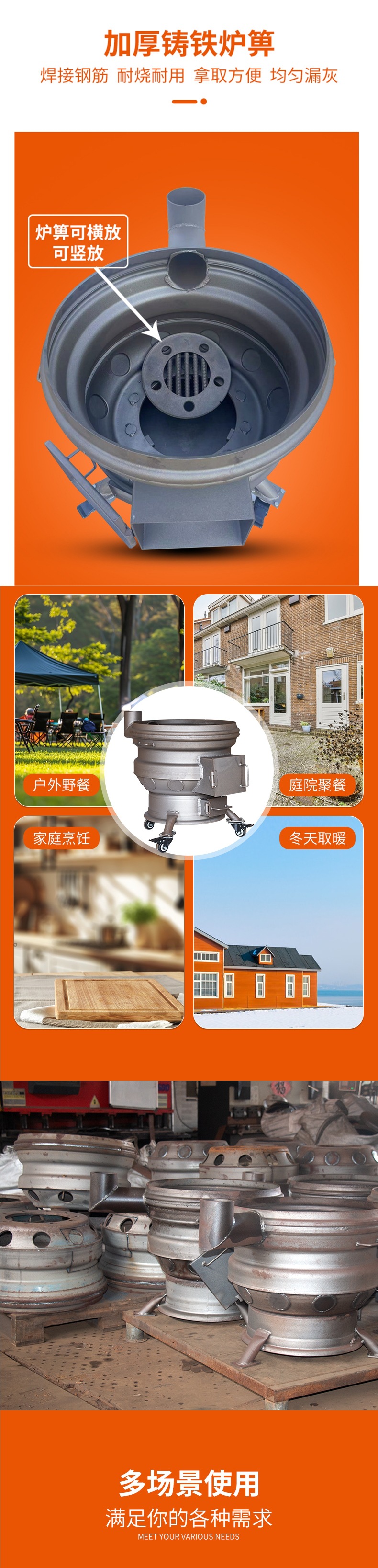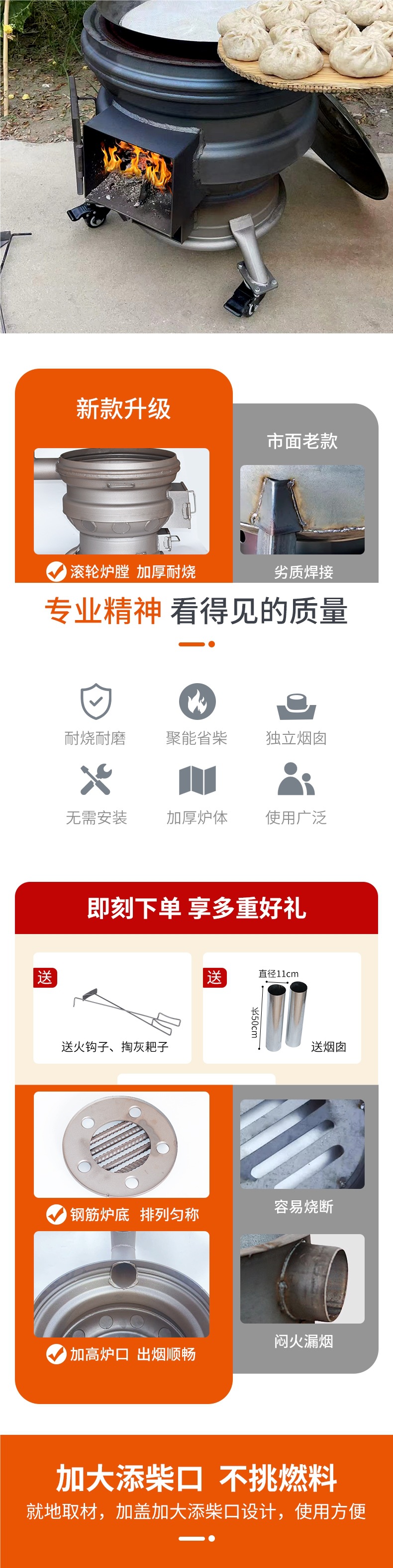장작 난로, 가정용 신형 장작 난로, 이동식 휠 허브, 두꺼운 강철 링, 농촌 대형 철 냄비 스토브
