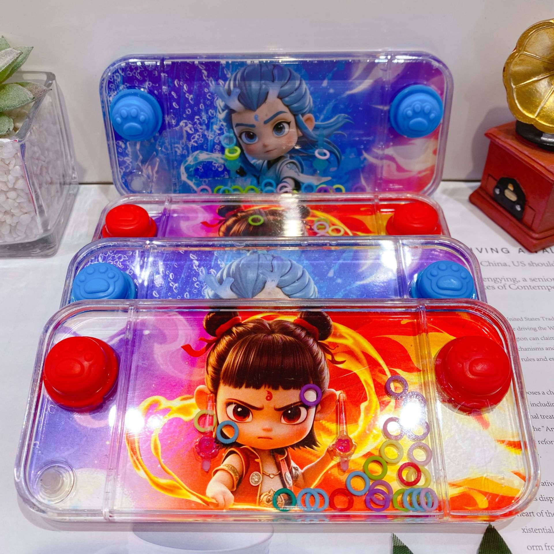 새로운 Nezha 재미있는 반지 물 기계 귀여운 만화 루프 게임 기계 향수 교육 감압 장난감