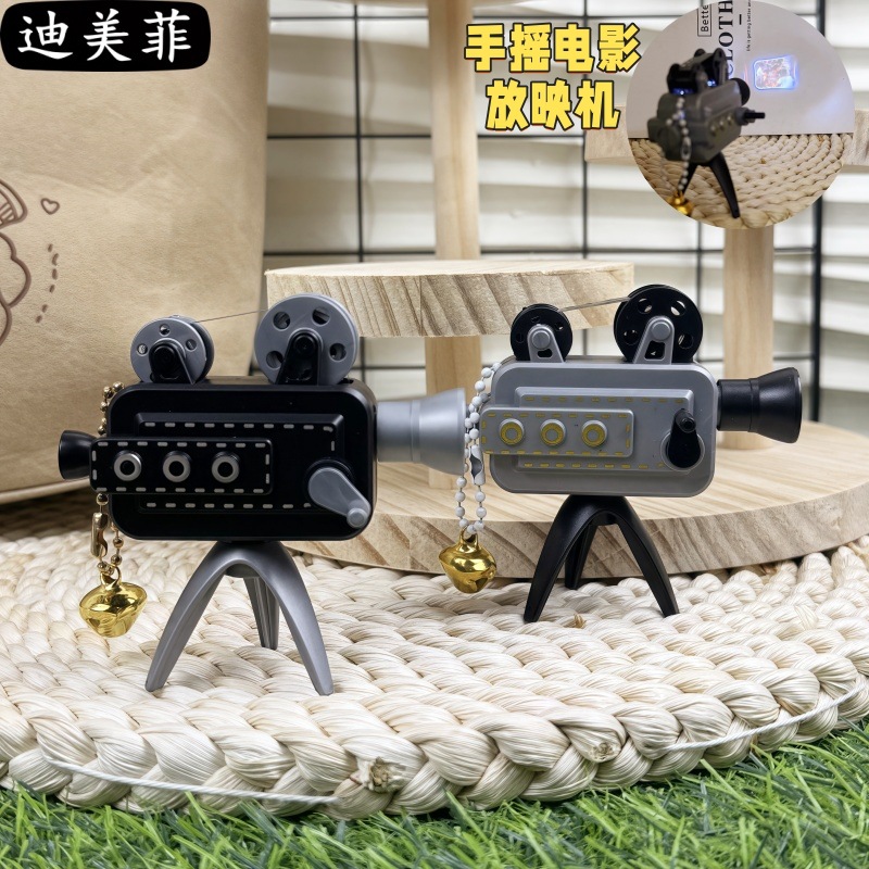 Douyin 미니 레트로 영화 영사기 핸드 로커 필름 프로젝션 장난감 창조적 인 어린이 키 체인스토어 가기