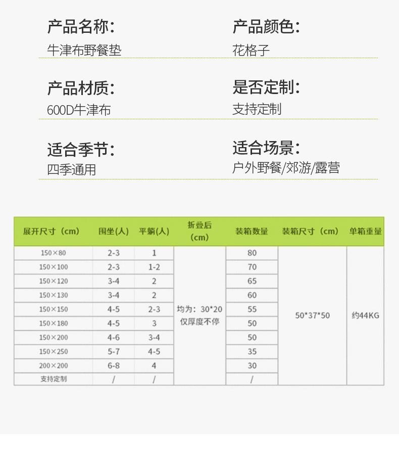 야외 피크닉 매트 두꺼운 나들이 매트 600d 옥스포드 천 방수 및 방습 접이식 휴대용 손잡이 방습