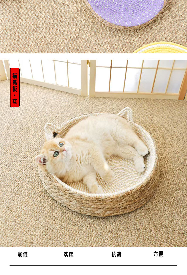 등나무 밀짚 일본 고양이 둥지 여름 반 폐쇄 밀짚 고양이 둥지 매트 사계절 보편적 인 애완 동물 용품 애완 동물 둥지
