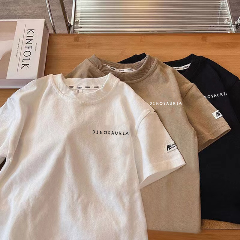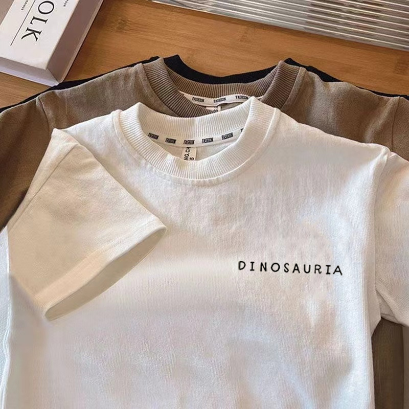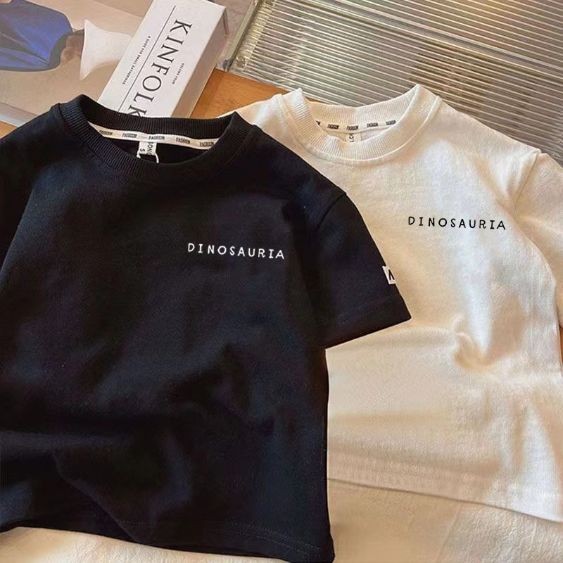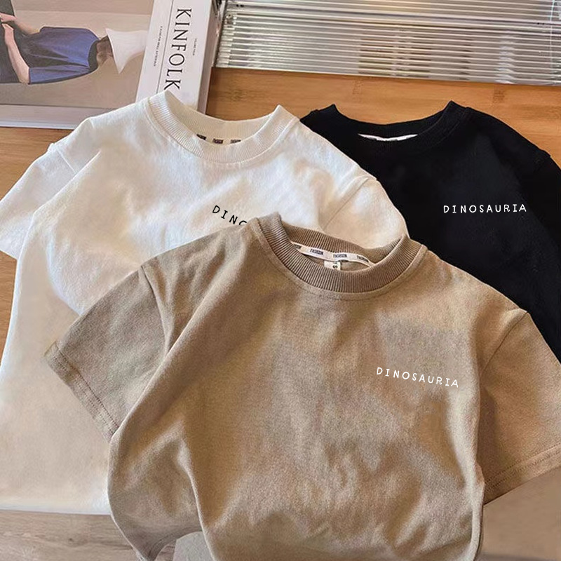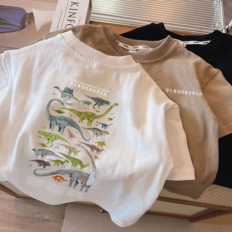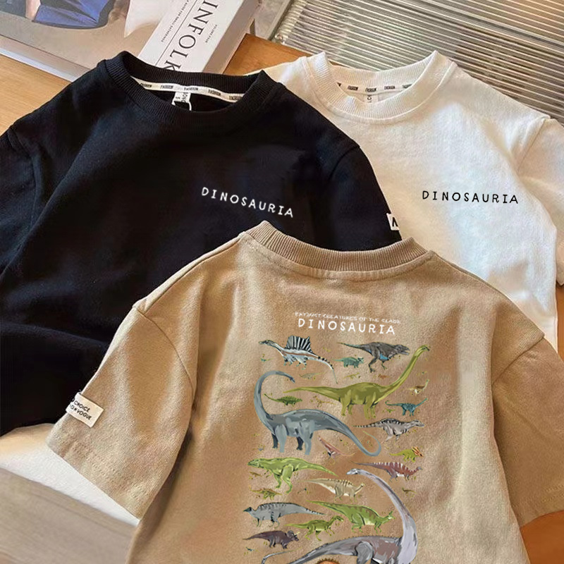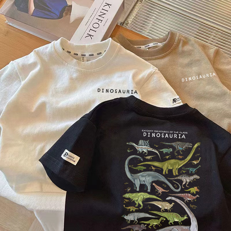 국경 간 어린이 반팔 2025 여름 새 소년과 소녀 일본 공룡 패턴 퓨어 코튼 탑 아기 웨스턴 스타일 티셔츠스토어 가기