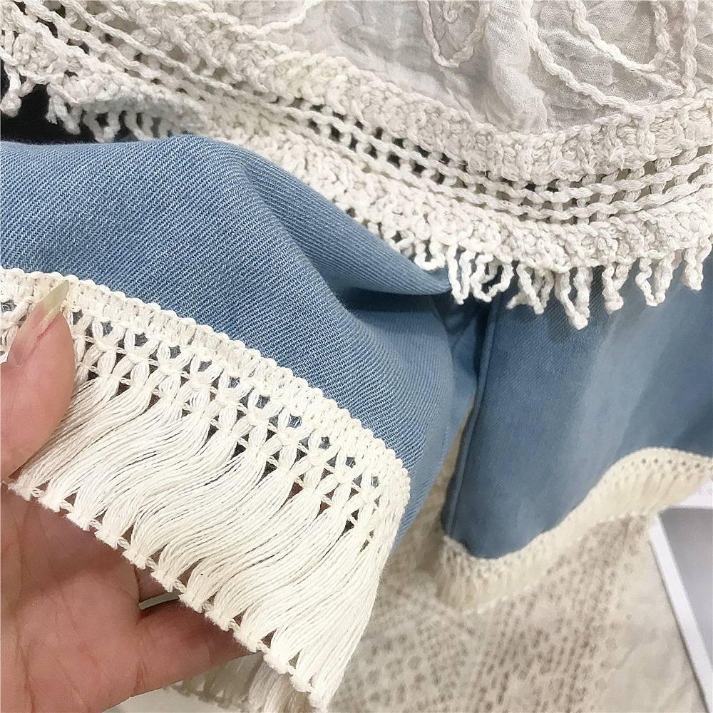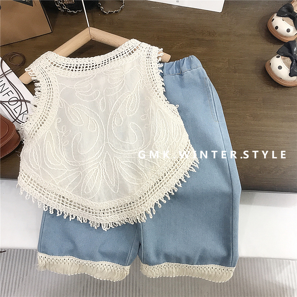 소녀의 여름 원피스 한국 스타일 세트 새로운 도착 소녀 자수 술 조끼 넓은 다리 바지 2 피스 세트